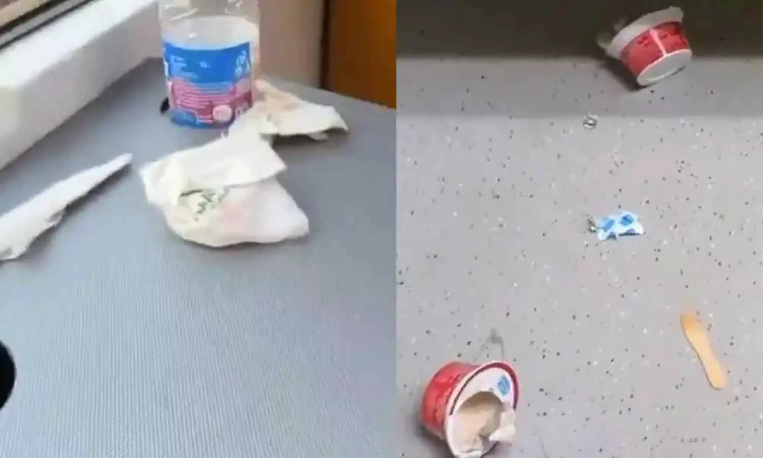 ആദ്യ യാത്രക്ക് പിന്നാലെയുള്ളൊരു കോച്ചിൽ പ്ലാസ്റ്റിക് പാക്കറ്റുകൾ, ഡിസ്പോസിബിൾ സ്പൂണുകൾ, ഭക്ഷണാവശിഷ്ടങ്ങൾ എന്നിവ ചിതറിക്കിടക്കുന്നതായി കാണാം.