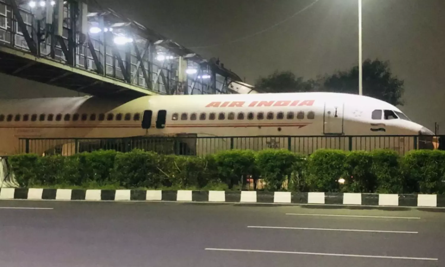 ഡല്ഹി എയര്പോര്ട്ടിനു സമീപം റോഡില് വന് ഗതാഗതകുരുക്കാണ് വിമാനം കുടുങ്ങിയതോടെ ഉണ്ടായത്.