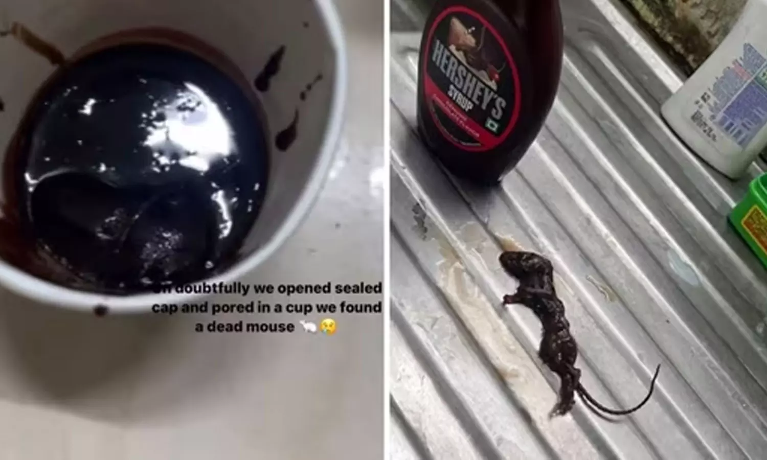 ഹെർഷെയുടെ ചോക്ലേറ്റ് സിറപ്പിൽ ചത്ത എലിക്കുഞ്ഞ്,ഞെട്ടിക്കുന്ന വീഡിയോ പങ്കുവെച്ച് യുവതി; പ്രതികരണവുമായി കമ്പനി