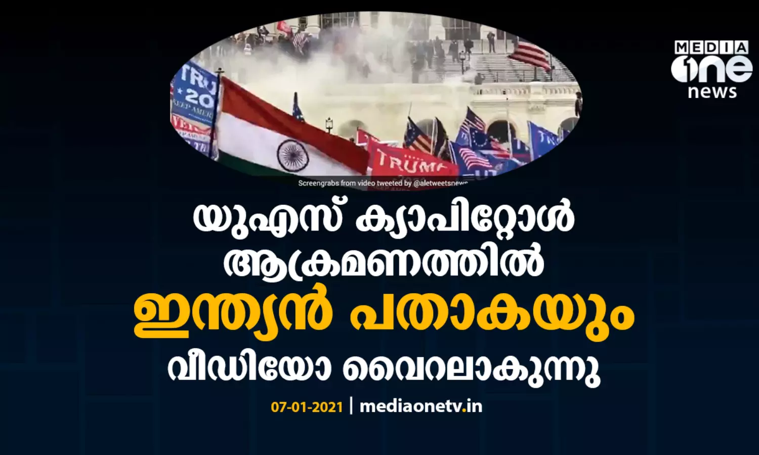 യു.എസ് ക്യാപിറ്റോള് ആക്രമണത്തില് ഇന്ത്യന് പതാകയും; വീഡിയോ വൈറലാകുന്നു