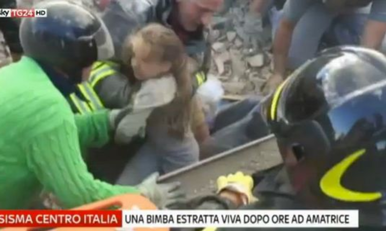 ഇറ്റലിയിലെ അമട്രിസില് ബുധനാഴ്ചയുണ്ടായ ഭൂകമ്പത്തെ തുടര്ന്നാണ് 11കാരിയായ ഗുലിയ മണ്ണിനടിയില് കുടുങ്ങിയത്. വീട് തകര്ന്നു വീണതിനെ തുടര്ന്ന് അവശിഷ്ടങ്ങള്ക്കിടയില് കുടുങ്ങുകയായിരുന്നു. ഇറ്റലി പൊലീസ് പ്രദേശത്ത് നടത്തിയ തെരച്ചിലിനിടയില് പൊലീസ് നായയാണ് കെട്ടിടത്തിനുള്ളില് കുടുങ്ങിയ ഗുലിയയെ കണ്ടെത്തിയത്. 15മണിക്കൂറിലധികമാണ് ഗുലിയ മണ്ണിടനടിയില് കഴിഞ്ഞത്. മണ്ണിനടിയില് നിന്ന് ഹര്ഷാരവത്തോടെയാണ് ഗുലിയയെ രക്ഷാ പ്രവര്ത്തകര് ജീവിതത്തിലേക്ക് ആനയിച്ചത്. അവശിഷ്ടങ്ങള്ക്കിടയില് ഇനിയും ആളുകള് ജീവനോടെ ഉണ്ടാകില്ലെന്ന നിഗമനത്തില് രക്ഷാപ്രവര്ത്തകര് തെരച്ചില് അവസാനിപ്പിച്ചിരിക്കുകയാണ്.