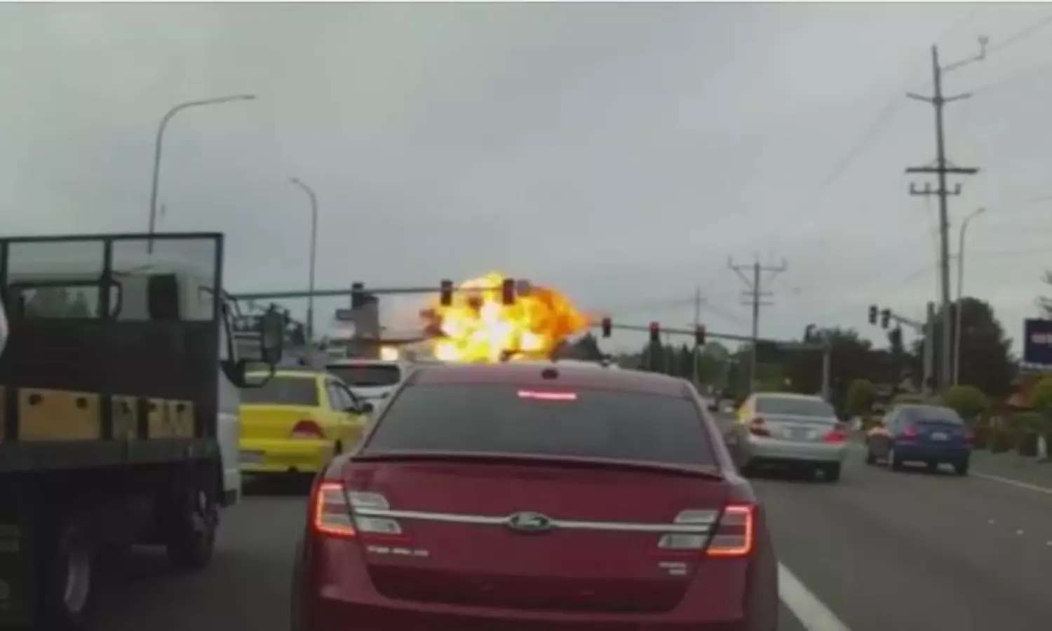സിഗ്നല് മാറുന്നതിനായി തിരക്കേറിയ റോഡില് കാത്തുകിടക്കുകയായിരുന്നു വാഹനങ്ങള്. എന്താണ് സംഭവിക്കുന്നതെന്ന് വ്യക്തമാകും മുന്പ് ആകാശത്തുനിന്നും റോഡരികിലേക്ക് പറന്നിറങ്ങി വിമാനം തീഗോളമായി മാറി