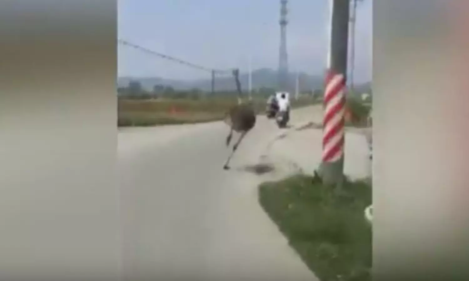 ദക്ഷിണ ചൈനയിലെ ഗോങ് പിങ് ടൌണില് ഏറെ ഒട്ടകപക്ഷികളുള്ള പക്ഷിസങ്കേതമുണ്ട്. ഇവിടുത്തെ ഒരു ഒട്ടകപക്ഷിയാണ് വേലി പൊളിച്ച് ഓടിയത്. കഴിഞ്ഞ ചൊവ്വാഴ്ച്ചയായിരുന്നു ആ രക്ഷപ്പെടല്. തിരക്കേറിയ റോഡിലൂടെയും പാടങ്ങളിലൂടെയും വാഹനങ്ങള്ക്കൊപ്പവുമൊക്കെ ശരവേഗത്തിലോടി.