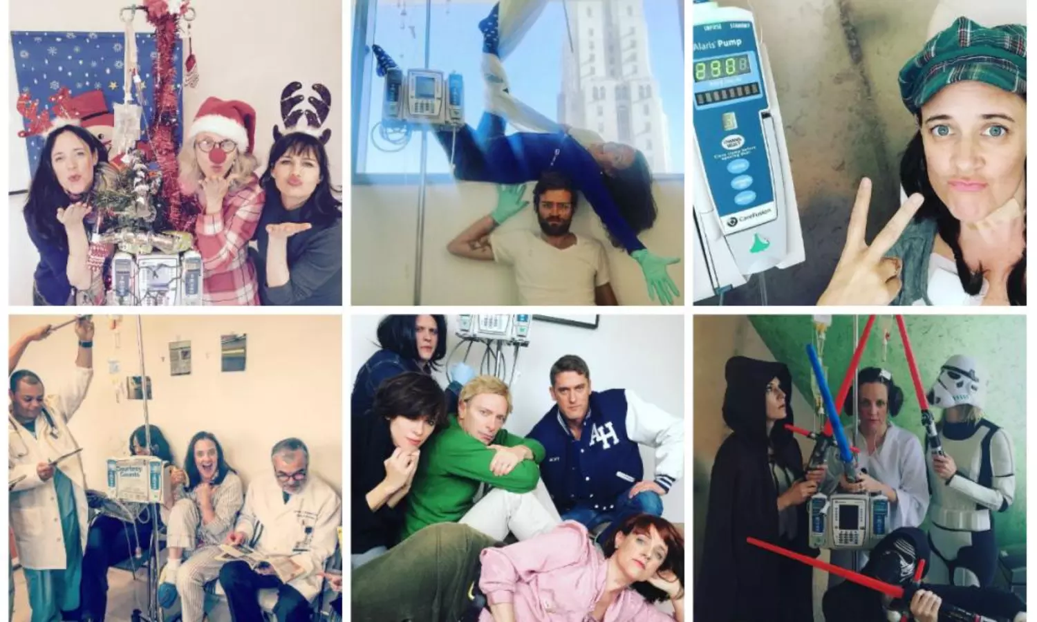 ക്യാന്സര് രോഗികള് ഭയത്തോടെ മാത്രം കാണുന്ന കീമോതെറാപ്പിയെ വളരെ കൂളായി നേരിട്ട് സെല്ഫികളെടുത്ത് ആഘോഷാക്കിയിരിക്കുകയാണ് ഹോളിവുഡ് നടി കരണ് വാല്ഷ്. കരണിന്റെ കീമോയുടെയും മറ്റ് ചികിത്സകളുടെയും ഫണ്ണി ചിത്രങ്ങള് സോഷ്യല് മീഡിയയില് വൈറലായി മാറിയിരിക്കുകയാണ്.