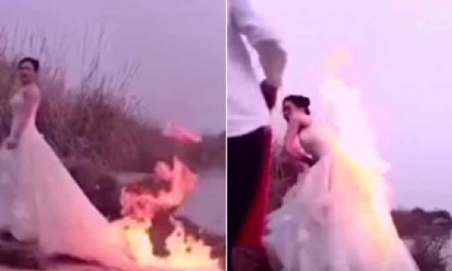 ഫോട്ടോ ഗംഭീരമാകാന് വധുവിന്റെ ഗൌണിന് തീയിട്ടു