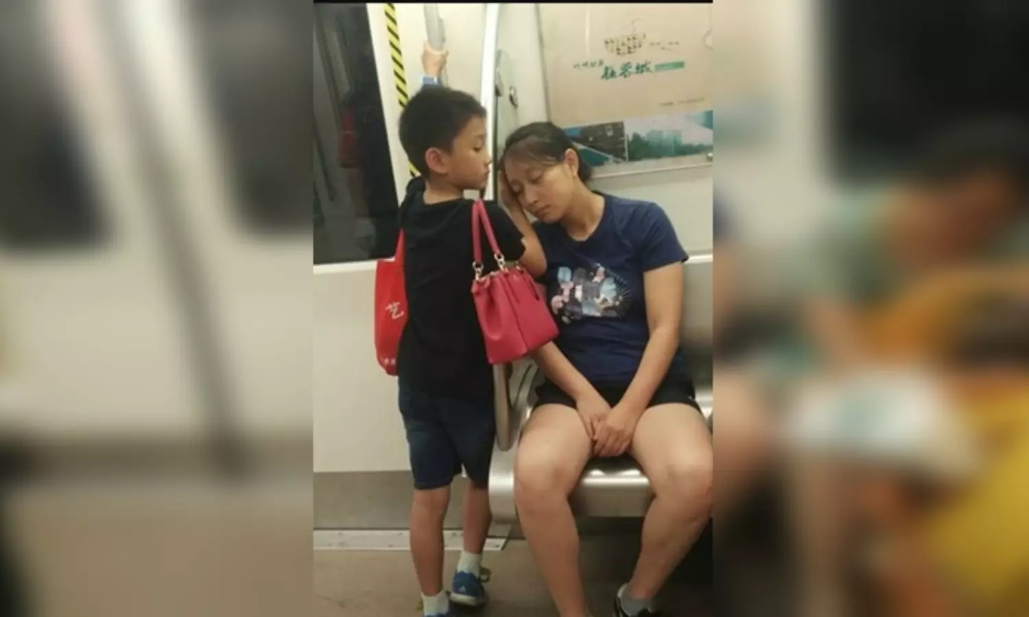 ചൈനീസ് സാമൂഹ്യമാധ്യമമായ വെയ്ബോയിലാണ് ചിത്രം പോസ്റ്റ് ചെയ്തത്. തുടര്ന്ന് ചൈന ഗ്ലോബല് ടിവി നെറ്റ്വര്ക്ക് അവരുടെ ഫേസ്ബുക്ക് പേജില് ചിത്രം ഷെയര് ചെയ്തതോടെ ഈ ദൃശ്യം വൈറലാവുകയും ചെയ്തു. അമ്മയുടെ ഉറക്കത്തിന് കാവലായി നില്ക്കുന്നതിനൊപ്പം മറ്റൊരു സ്ത്രീക്ക് സീറ്റൊഴിഞ്ഞ് കൊടുത്താണ് അവന് ട്രയിനില് നില്ക്കുന്നത്. ഒരു ചെറിയ കുട്ടിയുടെ അമ്മയോടുളള്ള കരുതല് കണ്ട് അത്ഭുതം കൂറുകയാണ് സോഷ്യല് മീഡിയ. ഒപ്പം അവന്റെ മാതൃസ്നേഹത്തെ അഭിനന്ദിക്കാനും മറന്നില്ല. എല്ലാവരുടെയും ഹൃദയം കീഴടക്കിക്കൊണ്ട് അവനങ്ങിനെ സോഷ്യല് മീഡിയയില് പാറിപ്പറക്കുകയാണ്.
