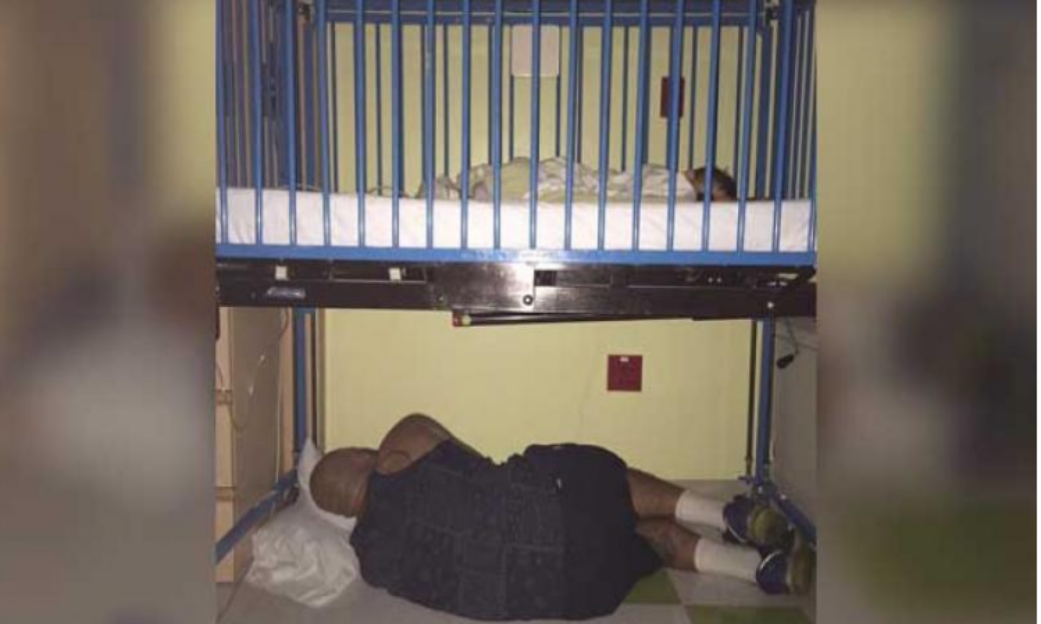 രോഗിയായ മകളുടെ തൊട്ടിലിനടിയില് ഉറങ്ങുന്ന പിതാവിന്റെ ചിത്രം വൈറലാകുന്നു