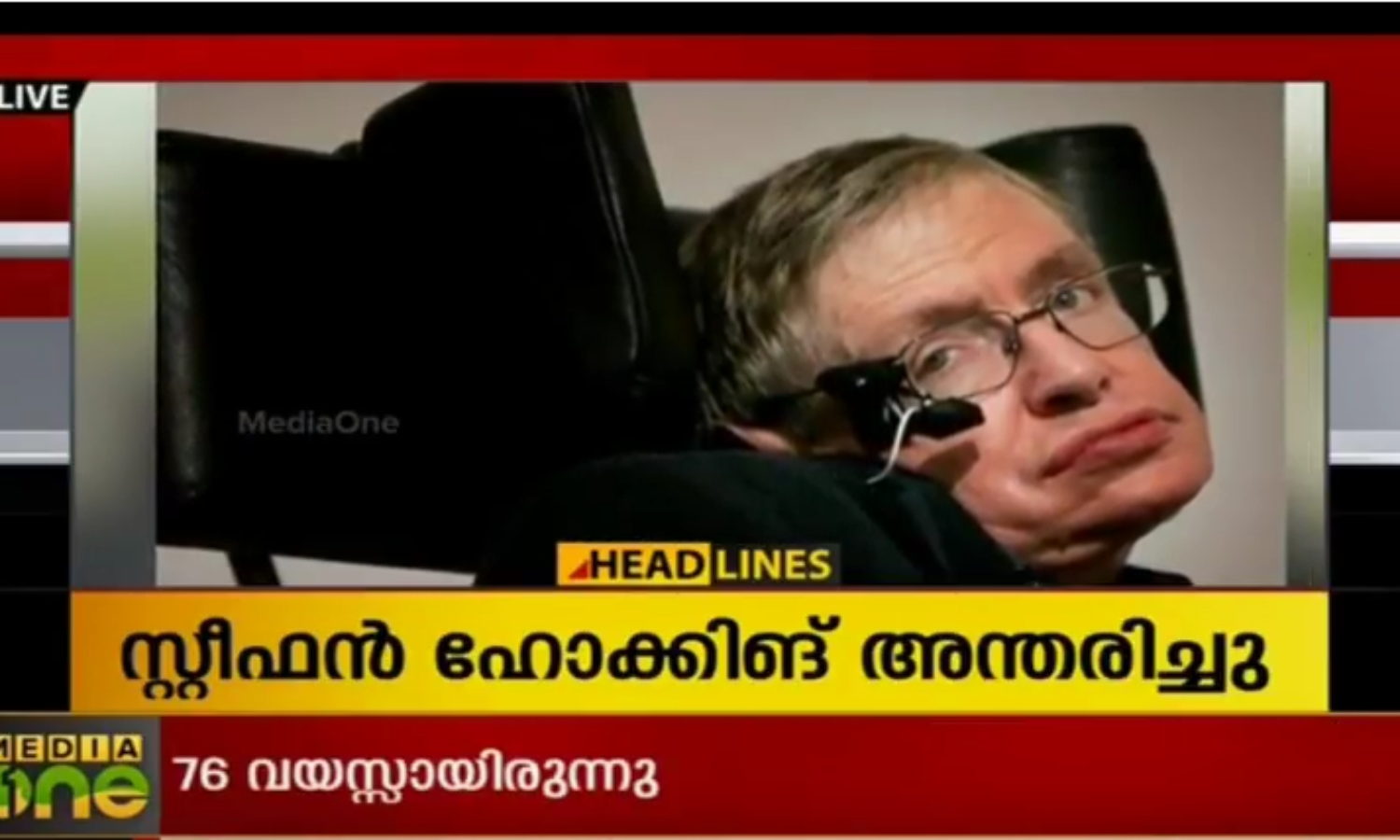 പ്രമുഖ ഭൌതിക ശാസ്ത്രജ്ഞന് സ്റ്റീഫന് ഹോക്കിങ്ങ് അന്തരിച്ചു. 76 വയസ്സായിരുന്നു. കുടുംബാംഗങ്ങളാണ് മരണവിവരം പുറത്തുവിട്ടത്. ഭൌതികശാസ്ത്രത്തെ വിസ്മയപ്പെടുത്തിയ അത്ഭുത മനുഷ്യനായിരുന്നു സ്റ്റീഫന് ഹോക്കിങ്ങ് .