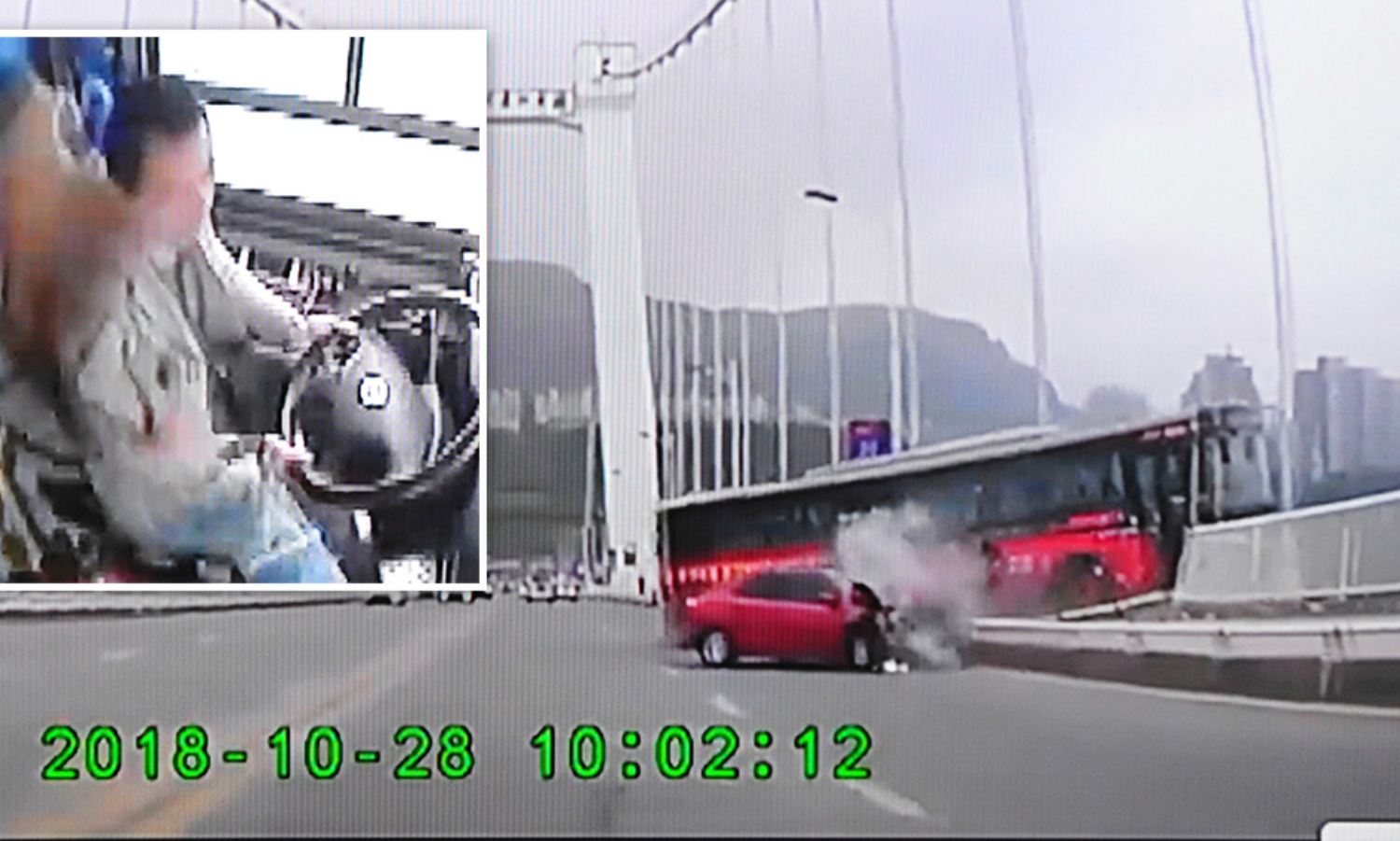 അതേസമയം ബസ് ഓടിച്ചുകൊണ്ടിരിക്കെ യാത്രക്കാരിയെ ഡ്രൈവറായ ഴാന് തിരിച്ച് ആക്രമിക്കുന്നതും ദൃശ്യങ്ങളില് വ്യക്തമാണ്. നിയന്ത്രണം വിട്ട ബസ് എതിരെ വന്ന കാറിലിടിക്കുന്നതിന്റെയും തുടര്ന്ന് പാലത്തിന്റെ കൈവരി തകര്ക്കുന്നതിന്റെയും ദൃശ്യങ്ങളും പുറത്തു വന്നിട്ടുണ്ട്.
