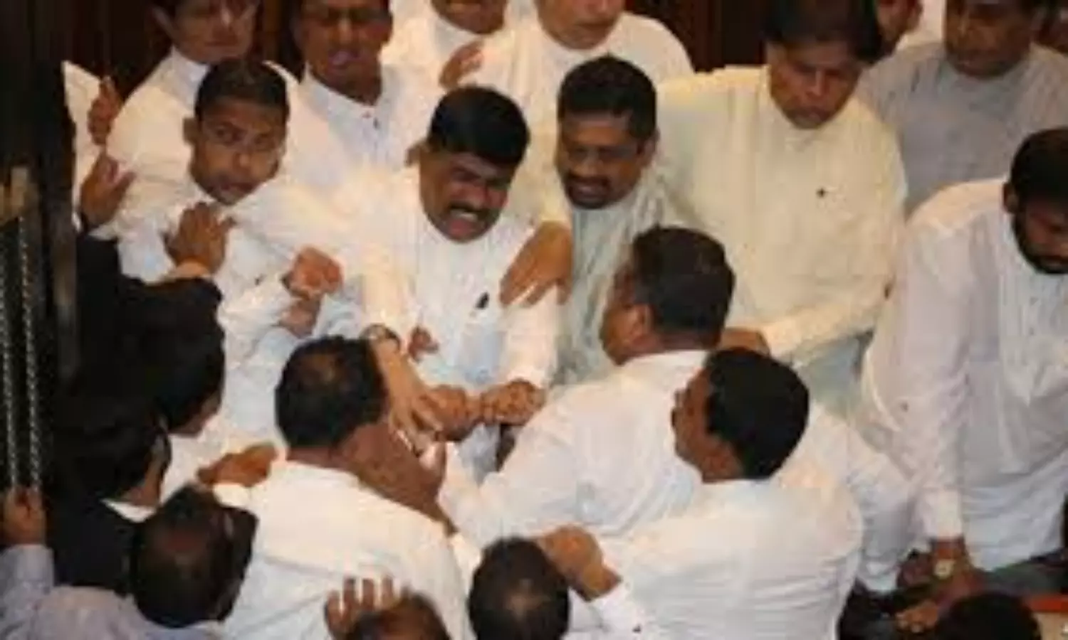 വ്യാഴാഴ്ചത്തെ സംഭവങ്ങളുടെ തനിയാവര്ത്തനമാണ് ഇന്നലെയും നടന്നത്. രാജപക്സെ അനുകൂലികളായ എം.പിമാര് സ്പീക്കറുടെ സീറ്റ് കൈയേറി സഭാനടപടികള് തടസ്സപ്പെടുത്തി. സ്പീക്കര്ക്കെതിരെ മുദ്രാവാക്യം വിളിച്ച് കസേരകളും വെള്ളക്കുപ്പികളും വലിച്ചെറിഞ്ഞു. രാജപക്സ അനുകൂലികളെ കുരുമുളക് സ്പ്രേയുമായാണ് പുറത്താക്കപ്പെട്ട റനില് വിക്രമസിംഗെയുടെ അനുയായികള് നേരിട്ടത്. 45 മിനിറ്റോളം കൈയാങ്കളി തുടര്ന്നു.