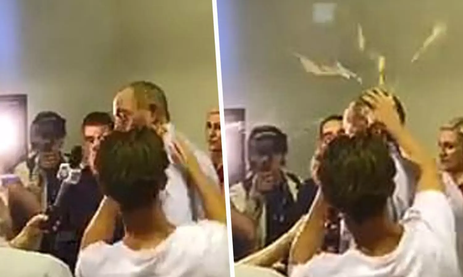 WATCH: This is the moment Senator Fraser Anning was egged by a teenage boy during a press conference in Melbourne. #9News pic.twitter.com/oePwz3pPH2
