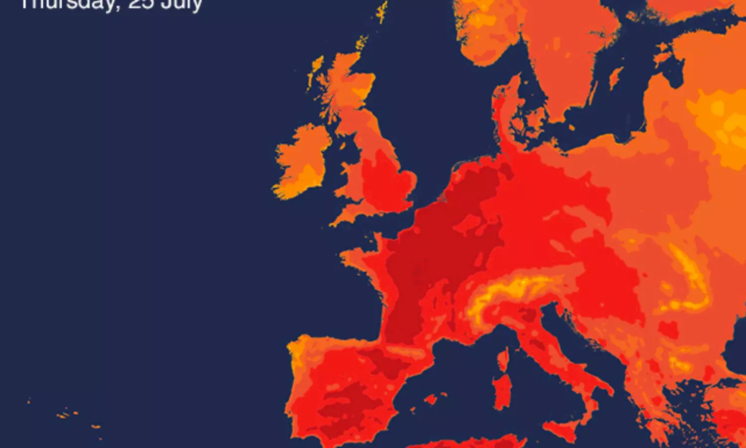 ജര്മനി,ബെല്ജിയം,നെതര്ലാന്ഡ്സ് എന്നിവിടങ്ങളിലും ചൂട് ക്രമാതീതമായി വര്ധിക്കാനാണ് സാധ്യത എന്ന് കാലാവസ്ഥ നിരീക്ഷണ കേന്ദ്രം പറയുന്നു. ചൂട് ക്രമാതീതമായി വര്ധിക്കുന്നതിനാല് ഫ്രാന്സില് വിവിധ പ്രദേശങ്ങളില് ഓറഞ്ച് അലര്ട്ട് പ്രഖ്യാപിച്ചിരിക്കുകയാണ്. 2003 ലാണ് ഇതിന് മുന്പ് ഉയര്ന്ന താപനില ഇവിടെ അനുഭവപ്പെട്ടത്. 40.7 ഡിഗ്രി സെല്ഷ്യസ് ചൂടാണ് അന്ന് രേഖപ്പെടുത്തിയത്.