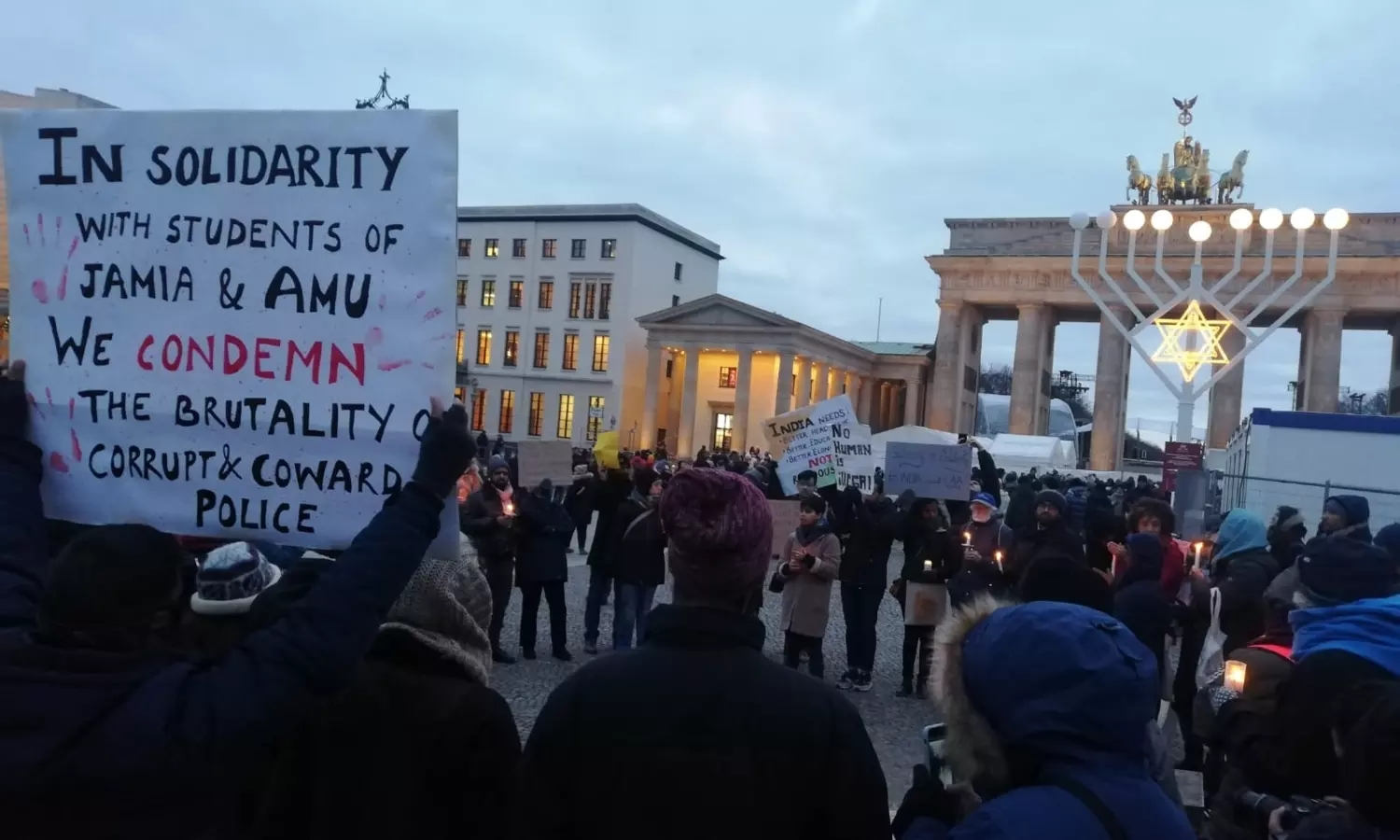 ജര്മനിയുടെ തലസ്ഥാനമായ ബെര്ലിനില് പൌരത്വ നിയമ ഭേദഗതിക്കെതിരായ പ്രതിഷേധം നടന്നു. ഇന്ത്യയില് പ്രതിഷേധങ്ങള്ക്കിടെ കൊല്ലപ്പെട്ടവരെ അനുസ്മരിച്ച് മെഴുകുതിരികള് തെളിയിച്ചായിരുന്നു പ്രതിഷേധം. ഇന്ത്യന് പൌരന്മാര്ക്കൊപ്പം മറ്റ് രാജ്യങ്ങളില് നിന്നുള്ളവരും പ്രതിഷേധത്തിന്റെ ഭാഗമായി. കഠിനമായ ശൈത്യത്തിലും മുദ്രാവാക്യങ്ങളുയര്ത്തിയാണ് പ്രതിഷേധക്കാര് ജാഗ്രതാ സംഗമത്തില് പങ്കുചേര്ന്നത്.