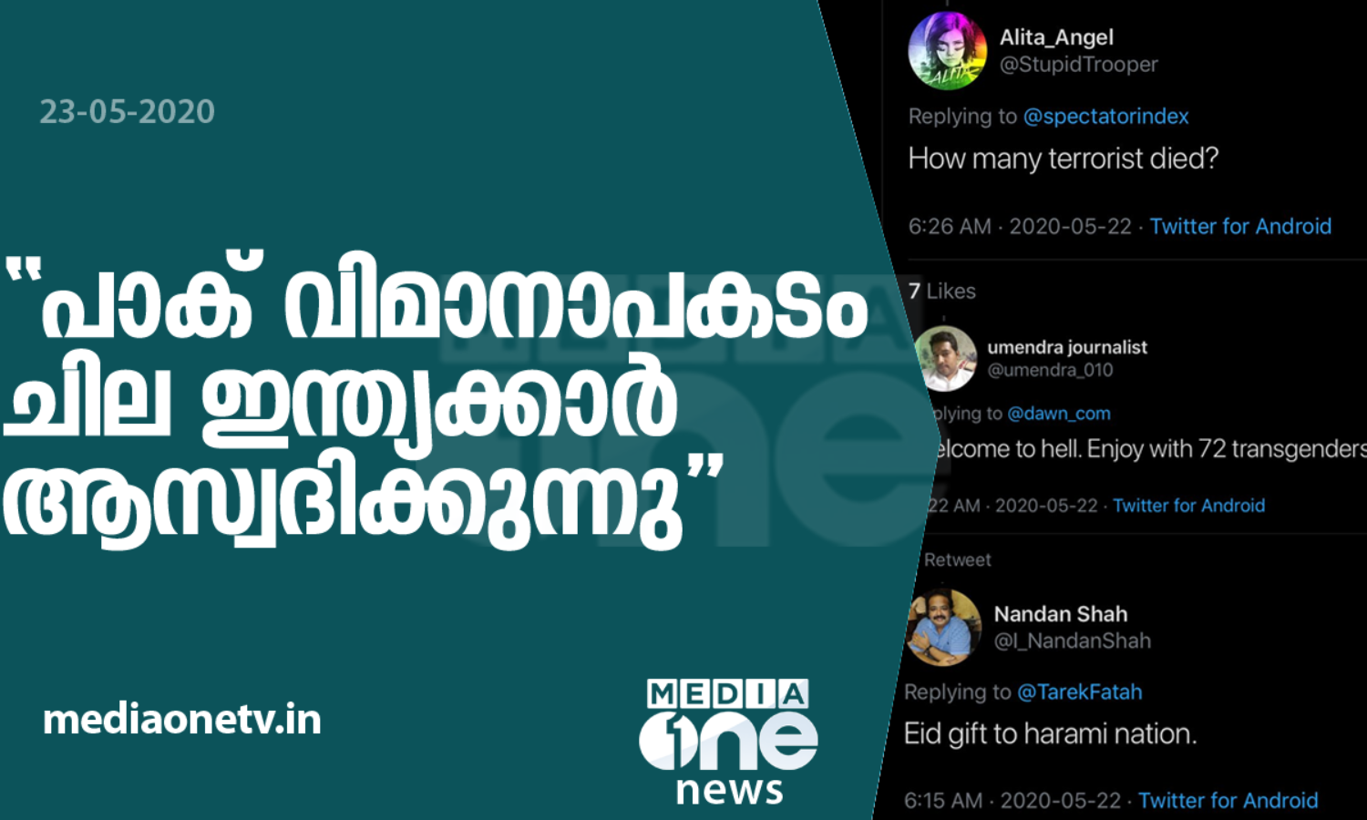 'പാക് വിമാനാപകടം ചില ഇന്ത്യക്കാർ ആസ്വദിക്കുന്നു'; ആരോപണവുമായി സോഷ്യല്മീഡിയ
