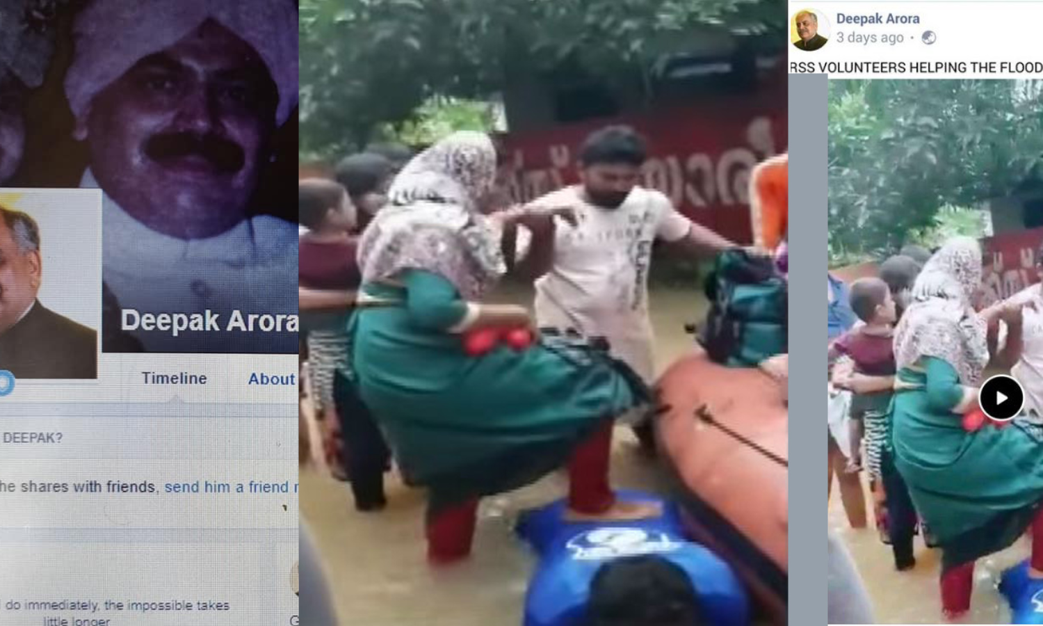 എന്നാല് ഈ ദുരിതകാലത്തും സോഷ്യല്മീഡിയയെ വ്യാജ പ്രചരണങ്ങള്ക്ക് ഉപയോഗിച്ച കുബുദ്ധികളുണ്ട്. ഇക്കൂട്ടത്തില് ഏറ്റവും കൂടുതല് ഉത്തരേന്ത്യന് സംഘപരിവാര് അനുകൂല വ്യാജന്മാരുമായിരുന്നു. എന്നാല് സംഘപരിവാറിന്റെ ഇത്തരം വ്യാജ പ്രചരണങ്ങളെ ഹൈക്കോടതിയിലെ തന്നെ ഒരു മുതിര്ന്ന അഭിഭാഷകന് കണ്ണടച്ചുവിശ്വസിച്ച് പ്രചരിപ്പിച്ചാലോ ? ജൈസലിനെ ആര്.എസ്.എസ് പ്രവര്ത്തകനായി ചിത്രീകരിച്ച് രക്ഷാപ്രവര്ത്തനത്തിന്റെ വീഡിയോ ഫേസ്ബുക്കില് പോസ്റ്റ് ചെയ്തത് ഡല്ഹിയിലെ മുതിര്ന്ന അഭിഭാഷകനായ ദീപക് അറോറയാണ്. ജൈസലിന്റെ നന്മയെ ആര്.എസ്.എസിന്റെ സേവനമായി വാഴ്ത്തിയായിരുന്നു വീഡിയോയ്ക്കൊപ്പം ദീപക്കിന്റെ കുറിപ്പ്.