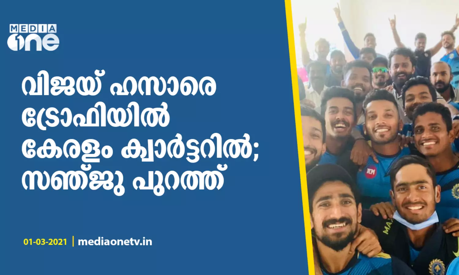 വിജയ് ഹസാരെ ട്രോഫിയില് കേരളം ക്വാര്ട്ടറില്; പരിക്കേറ്റ് സഞ്ജു പുറത്ത്