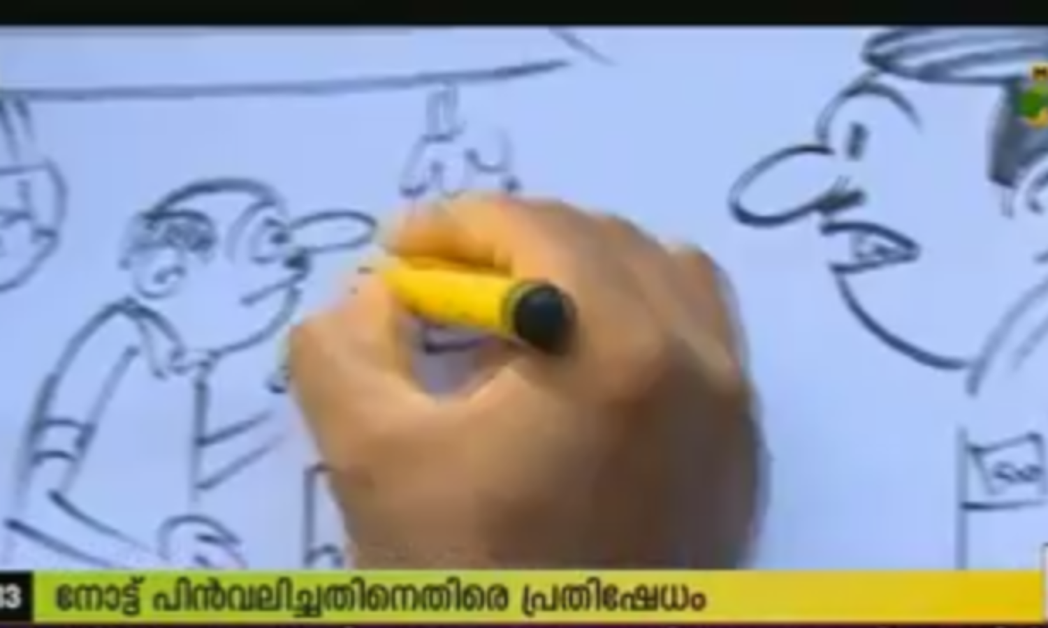 പത്തനംതിട്ടയിലെ എസ്ബിഐ ബാങ്കിന് മുന്നിലാണ് മുന്നൊരുക്കമില്ലാത്ത നോട്ട് നിരോധത്തിനെതിരെ വരകൊണ്ടുള്ള പ്രതിഷേധം അരങ്ങേറിയത്.
