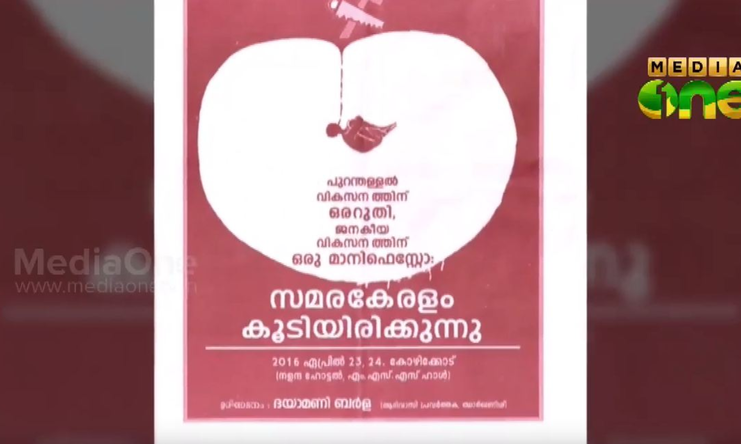 പുറന്തള്ളല് വികസനത്തിനെതിരെ സമര കേരളം കുടിയിരിക്കുന്നു എന്ന പേരിലാണ് മാനിഫെസ്റ്റോ തയ്യാറാക്കുന്നതിനുള്ള ചര്ച്ചകള് നടക്കുക. കോഴിക്കോട് നളന്ദ ഓഡിറ്റോറിയത്തില് നടക്കുന്ന പരിപാടി ഝാര്ഖണ്ഡിലെ പ്രമുഖ ആദിവാസി നേതാവ് ദയാമണി ബിര്ള ഉദ്ഘാടനം ചെയ്യും. പരിസ്ഥിതിയേയും മനുഷ്യനെയും പരിഗണിക്കാത്ത വികസന സങ്കല്പങ്ങളാണ് രാഷ്ട്രീയ പാര്ട്ടികള് മുന്നോട്ടുവെക്കുന്നതെന്ന് പരിപാടിയുടെ സംഘാടകര് പറയുന്നു.