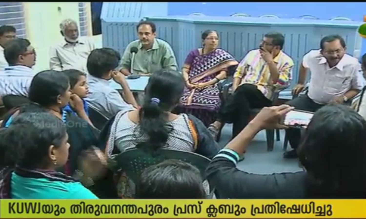 സ്വകാര്യ ചാനല് ചര്ച്ചയില് വനിത മാധ്യമ പ്രവര്ത്തകര്ക്കെതിരെ അഭിഭാഷകന് രാംകുമാര് നടത്തിയ മോശം പരാമര്ശത്തിനെതിരെ തിരുവനന്തപുരം പ്രസ് ക്ലബും കെയുഡബ്ല്യുജെയും സംയുക്തമായി പ്രതിഷേധിച്ചു. പ്രസ്ക്ലബില് നടന്ന പരിപാടിക്ക് ഭാരവാഹികളും കെയുഡബ്ല്യുജെ ജില്ലാ ഭാരവാഹികളും നേതൃത്വം നല്കി. അഡ്വക്കറ്റ് രാംകുമാര് നടത്തിയത് ഹീനമായ സ്ത്രീ വിരുദ്ധ പരാമര്ശമാണെന്ന് ചടങ്ങില് പങ്കെടുത്ത് സംസാരിച്ചവര് വിമര്ശിച്ചു. ചടങ്ങില് മുതിര്ന്ന മാധ്യമപ്രവര്ത്തര് പ്രതിഷേധം രേഖപ്പെടുത്തി.