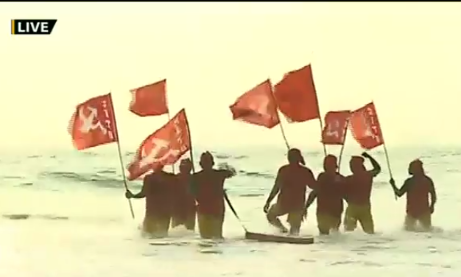 അവകാശങ്ങള് നേടിയെടുക്കുന്നതിനായി പലതരം സമരങ്ങള്ക്ക് നാം സാക്ഷിയായിട്ടുണ്ട്.എന്നാല് കടലില് ഇറങ്ങിയുളള ഒരു സമര കാഴ്ച അപൂര്വ്വ മായിരിക്കും. കണ്ണൂര് പയ്യാമ്പലം ബീച്ചിലെ ലൈഫ് ഗാര്ഡുമാരാണ് വിവിധ ആവശ്യങ്ങള് ഉന്നയിച്ച് ഇന്നലെ കടല് ശയനസമരം നടത്തി പ്രതിഷേധിച്ചത്.