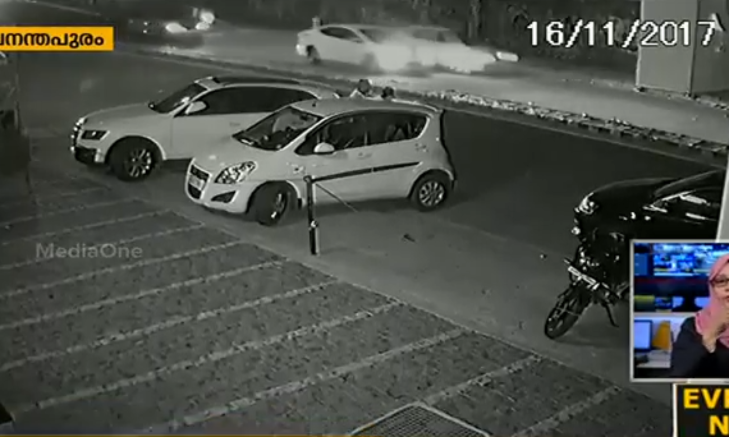 രാജ്ഭവന് മുന്നില് അപകടത്തില് പെട്ട കാര് അമിത വേഗത്തില് പോകുന്ന ദൃശ്യം ലഭിച്ചു