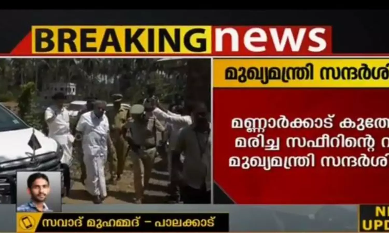മണ്ണാര്ക്കാട് കുത്തേറ്റ് മരിച്ച ലീഗ് പ്രവര്ത്തകന് സഫീറിന്റെ വീട് മുഖ്യമന്ത്രി സന്ദര്ശിച്ചു. അട്ടപ്പാടിയില് നിന്ന് മടങ്ങുമ്പോഴാണ് മുഖ്യമന്ത്രി മണ്ണാര്ക്കാട്ടെത്തിയത്.