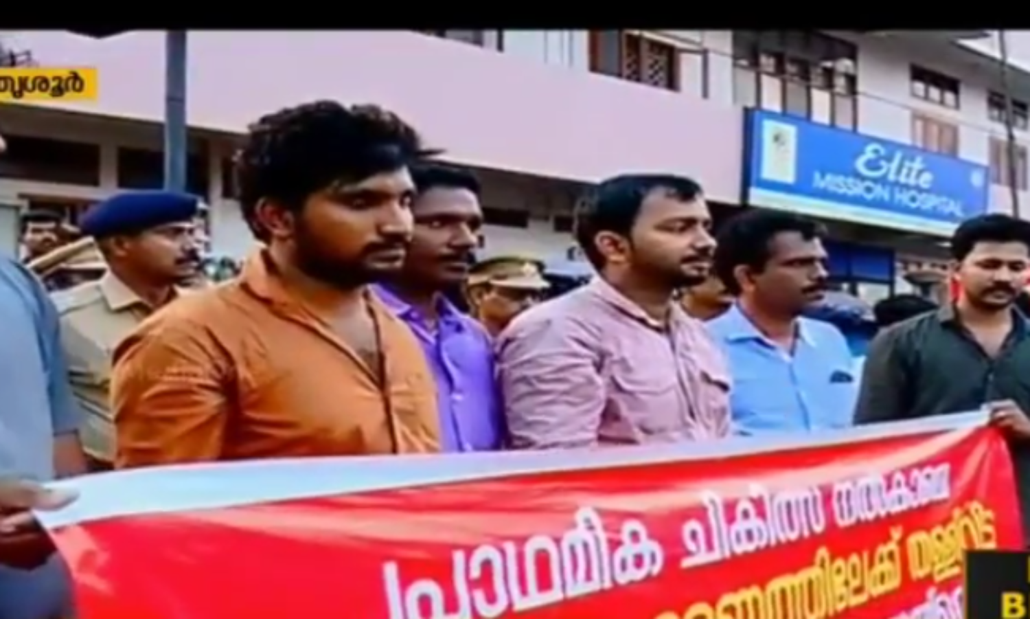 രോഷാകുലരായ നാട്ടുകാര് തൃശൂര് എലൈറ്റ് ആശുപത്രി ഉപരോധിച്ചു