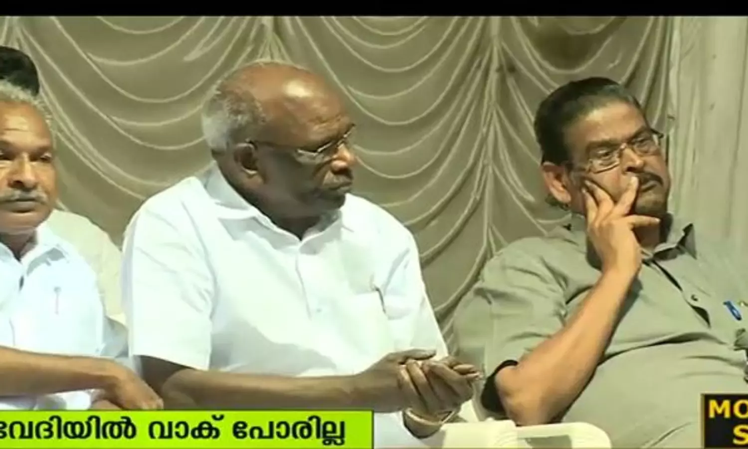 പിന്നെ ഒരു ചെറിയ കസേരകളി. രണ്ട് പേര്ക്കുമിടയില് കസേരയുടെ എണ്ണം കൂടി. പരിപാടി തീരും മുമ്പെ എം എം മണിക്ക് അഭിവാദ്യമര്പ്പിച്ച് ശിവരമാനിറങ്ങി. തിരിച്ചു കൈവീശി എം എം മണി വേദിയില് തുടര്ന്നു.