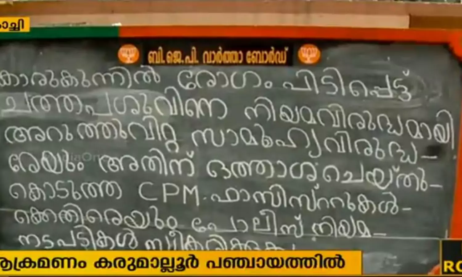 പശുവിനെ അറുത്തതിന് കേരളത്തിലും ആര്എസ്എസ് ബിജെപി പ്രവര്ത്തകരുടെ അക്രമം. എറണാകുളം കരുമാല്ലൂര് പഞ്ചായത്തിലാണ് സംഭവം. ഈസ്റ്റര് ആഘോഷത്തിന് പശുവിനെ ഇറച്ചിക്കു വേണ്ടി അറുത്തതിന്റെ പേരിലാണ് കരുമാല്ലൂര് പഞ്ചായത്തിലെ കാരുകുന്നില് ആര്എസ്എസ് ബിജെപി പ്രവര്ത്തകര് ആക്രമണം നടത്തിയതെന്ന് പരാതിയുള്ളത്. സംഭവത്തില് ബിജെപി ആര്എസ്എസിനെതിരെ പഞ്ചായത്താണ് പരാതിയുമായി രംഗത്തുള്ളത്.