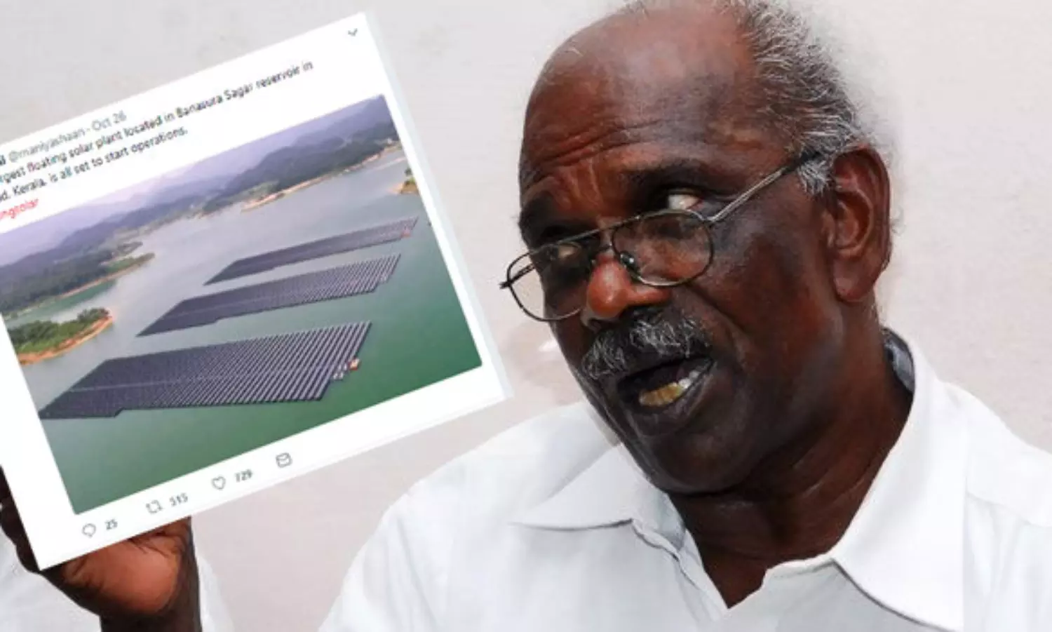 ഇന്ത്യയിലെ ഏറ്റവും വലിയ ഫ്ളോട്ടിങ് സോളാര് പ്ലാന്റ് കേരളത്തില് പ്രവര്ത്തനസജ്ജമാകുന്നതായി കാണിച്ചായിരുന്നു കൊറിയയിലെ സോളാര് പ്ലാന്റിന്റെ ചിത്രത്തോടൊപ്പമുള്ള മണിയുടെ ട്വീറ്റ്..