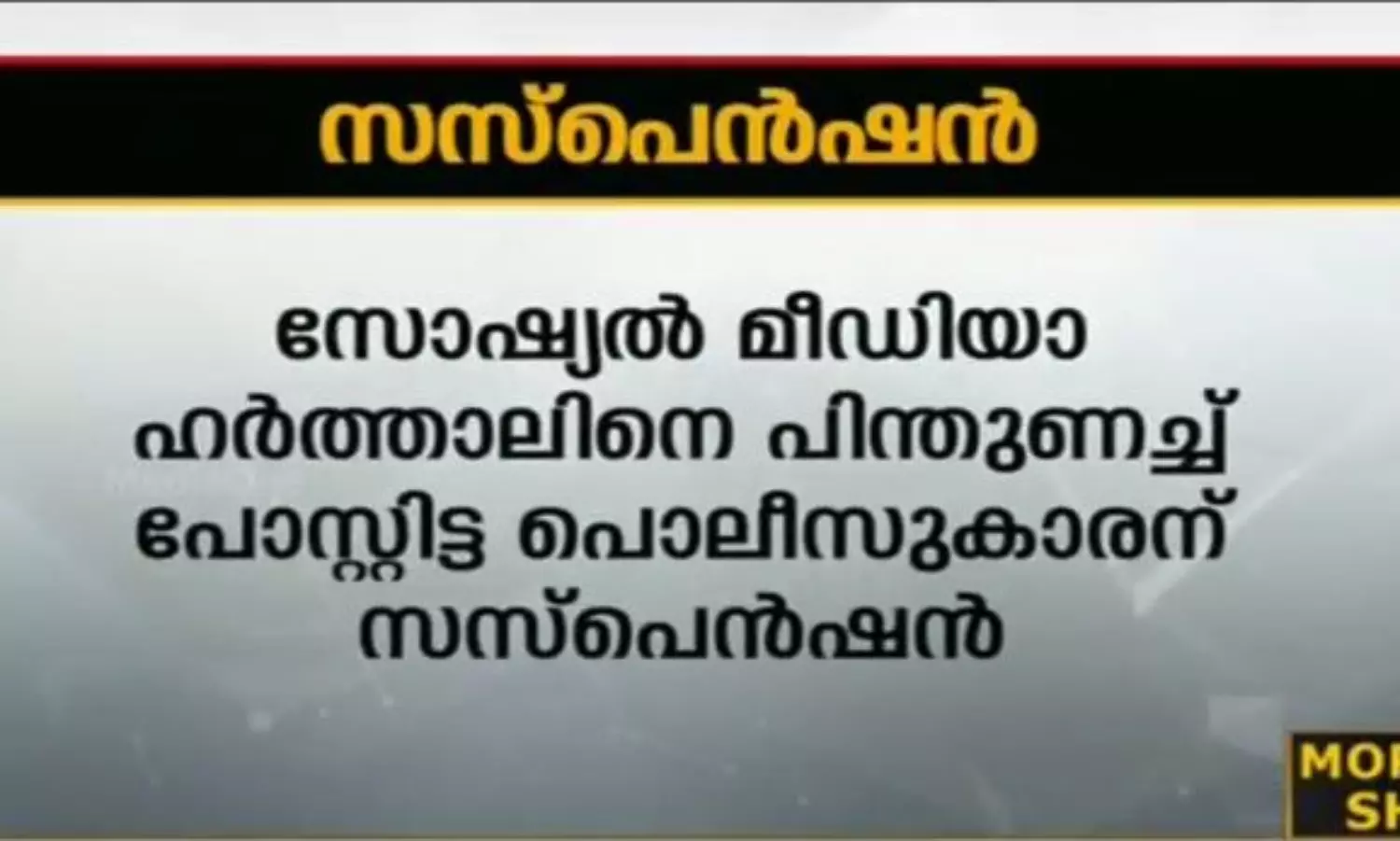സോഷ്യല് മീഡിയ ഹര്ത്താലിനെ പിന്തുണച്ച പൊലീസുകാരന് സസ്പെന്ഷന്