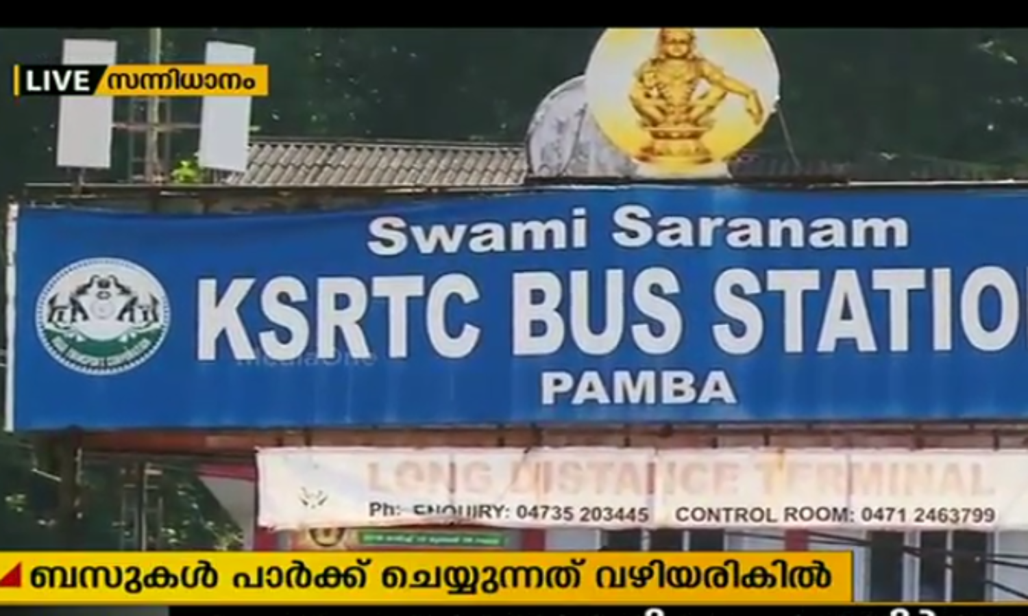 പമ്പ കെഎസ്ആര്ടിസി ഡിപ്പോയില് ബസ് പാര്ക്ക് ചെയ്യുന്നതിനായി അനുവദിച്ച സ്ഥലം വനംവകുപ്പ് കെട്ടിയടച്ച നടപടിക്ക് പരിഹാരമായില്ല. പാര്ക്കിംഗിന് സ്ഥലം ലഭിക്കാത്തതിനാല് എരുമേലി-പമ്പ ചെയിന് സര്വീസ് നടത്തുന്ന ബസുകള് നിലവില് റോഡരികിലാണ് പാര്ക്ക് ചെയ്യുന്നത്. വരും ദിവസങ്ങളില് തിരക്കേറുമ്പോള് പ്രശ്നം രൂക്ഷമാകാനാണ് സാധ്യത.