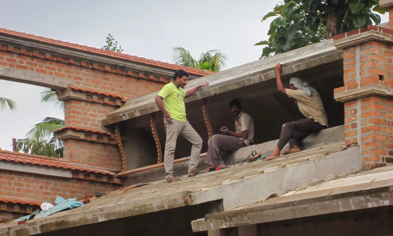പൊള്ളുന്ന വെയില് വകവെക്കാതെ കൂറ്റന് കെട്ടിടങ്ങളുടെ മുകളില് തൊഴിലാളികള്