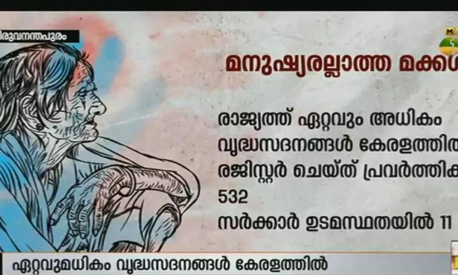 രാജ്യത്ത് ഏറ്റവും അധികം വൃദ്ധസദനങ്ങളുള്ള സംസ്ഥാനമായി കേരളം മാറിയെന്നാണ് സാമൂഹ്യക്ഷേമവകുപ്പിന്റെ കണക്ക്. ചെറിയൊരു മുറിയും കുറച്ച് അമ്മമാരും ഉണ്ടെങ്കില് വൃദ്ധമന്ദിരങ്ങള് ആര്ക്കും തുടങ്ങാമെന്ന നിയമമാണ് ഇതിന് പ്രധാന കാരണം. സംസ്ഥാനത്തുള്ള 532 വൃദ്ധസദനങ്ങളില് 11 എണ്ണമേ സര്ക്കാരിന്റെ ഉടമസ്ഥതയില് ഉള്ളൂ. മീഡിയവണ് പരമ്പരയുടെ പശ്ചാത്തലത്തില് നിയമം പരിഷ്ക്കരിക്കാന് സര്ക്കാര് ഉദ്ദേശിക്കുന്നുണ്ടെന്ന് കെ കെ ശൈലജ പറഞ്ഞു.