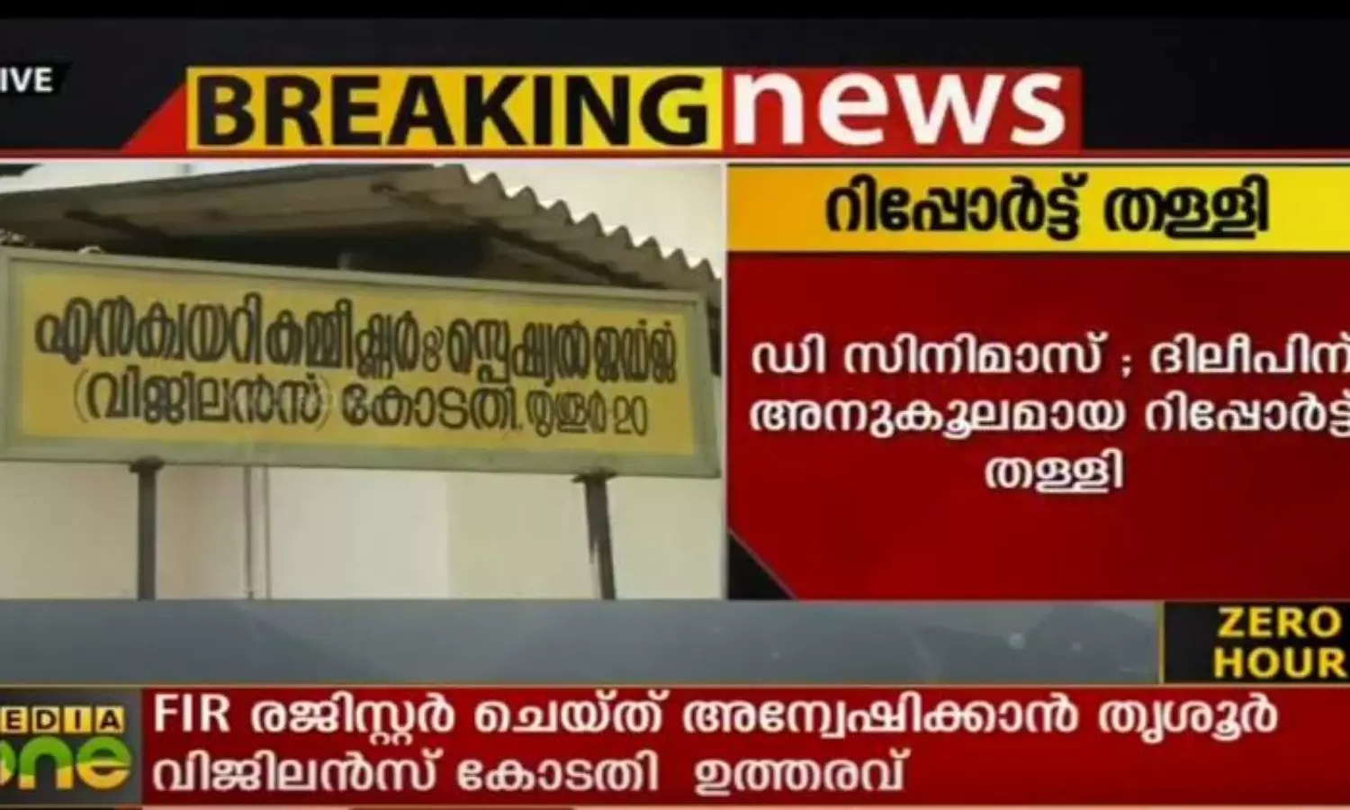 നടന് ദിലീപിന്റെ ഉടമസ്ഥതയിലുള്ള ഡി സിനിമാസ് ഭൂമിയിടപാട് കേസില് എഫ്ഐആര് ഇട്ട് അന്വേഷിക്കാന് തൃശൂര് വിജിലന്സ് കോടതി ഉത്തരവ്. കയ്യേറ്റമില്ലെന്ന വിജിലന്സിന്റെ ത്വരിതാന്വേഷണ റിപ്പോര്ട്ട് തള്ളിയാണ് കോടതി വിധി.