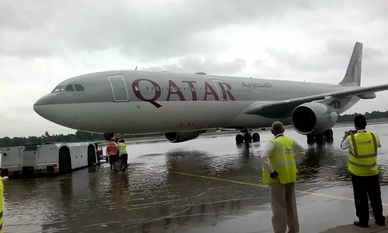 നെടുമ്പാശേരി രാജ്യാന്തര വിമാനത്താവളത്തിൽ കനത്ത മഴയിൽ വിമാനം റൺവേയിൽ തെന്നി മാറി