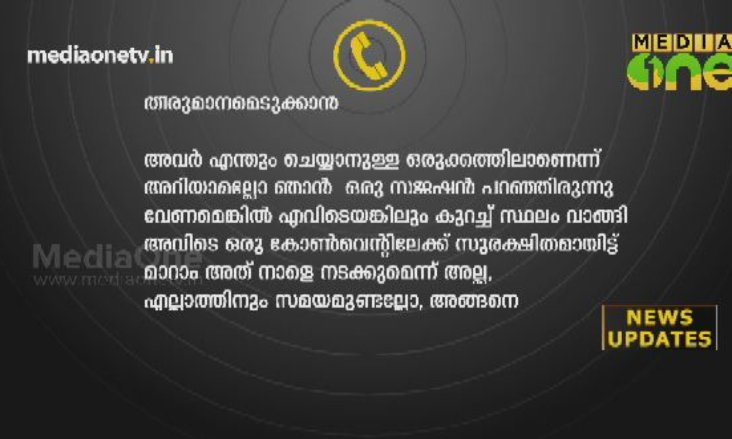 ജലന്ധര് ബിഷപ്പിനെതിരായ പരാതി പിന്വലിപ്പിക്കാന് സഹോദരന് പണം വാഗ്ദാനം ചെയ്തതിന് പിന്നാലെയാണ് കന്യാസ്ത്രീക്ക് ഒപ്പം നില്ക്കുന്ന കന്യാസ്ത്രീമാരെയും സ്വാധീനിക്കാന് ശ്രമം നടക്കുന്നത്. സി.എം.ഐ കുര്യനാട് ആശ്രമത്തിലെ വൈദികനായ ജെയിംസ് ഏര്ത്തയില് മറ്റൊരു കന്യാസ്ത്രീയുമായി നടത്തിയ ഫോണ് സംഭാഷണം മീഡിയവണിന് ലഭിച്ചു. പരാതിയില് നിന്ന് പിന്മാറിയാല് പുതിയ മഠം പണിയുന്നതിന് പത്ത് ഏക്കര് ഭൂമി വരെ ഫോണ് സംഭാഷണത്തില് വാഗ്ദാനം ചെയ്യുന്നുണ്ട്. പരാതി ഒത്ത് തീര്പ്പാക്കാന് ജലന്ധര് രൂപത എന്തിനും തയ്യാറായി നില്ക്കുകയാണെന്നും ഫാദര് ജെയിംസ് ഏര്ത്തയില് കന്യാസ്ത്രീയോട് പറയുന്നുണ്ട്.
