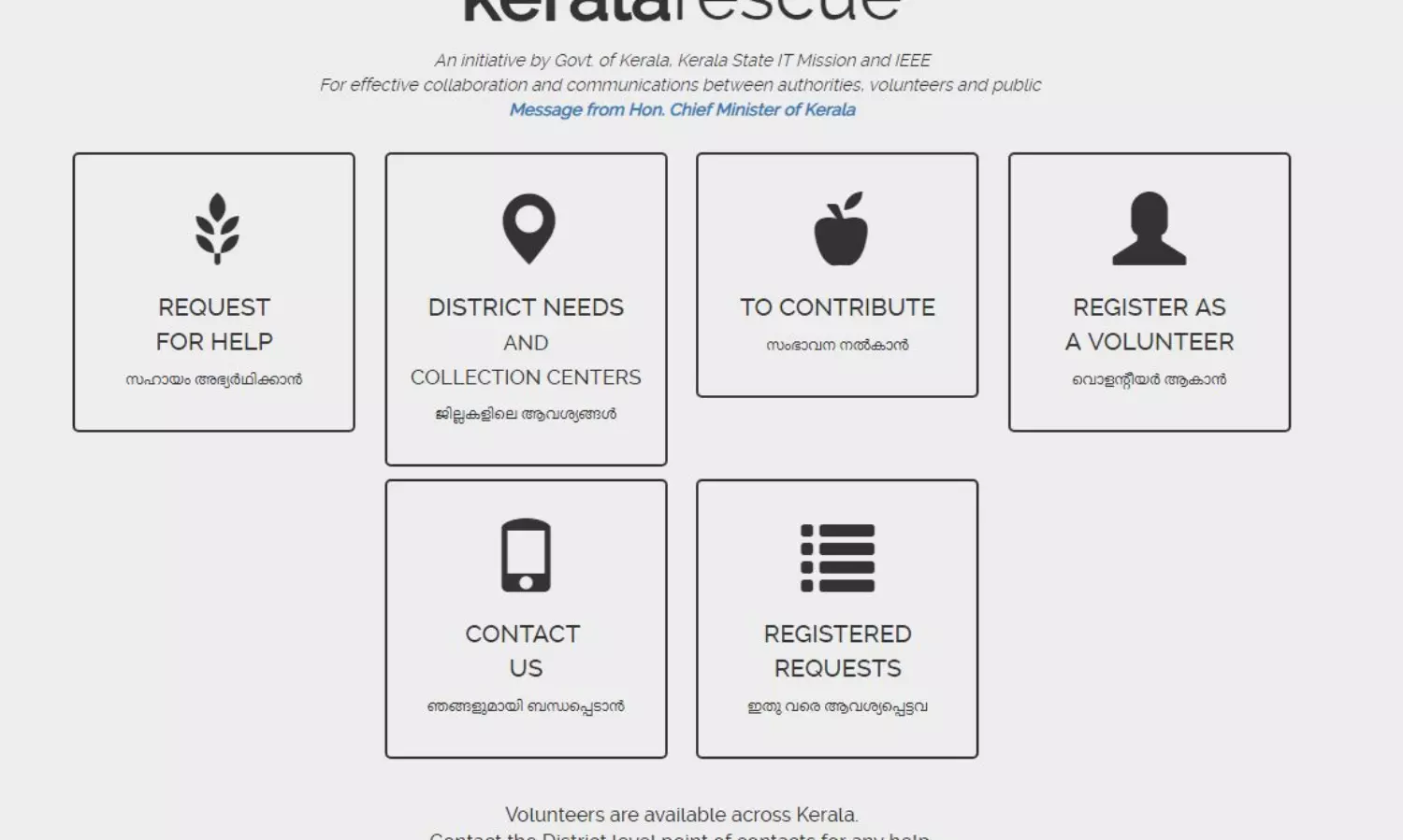 സഹായം അഭ്യര്ത്ഥിക്കാനും, സഹായങ്ങള് എത്തിക്കാനും സര്ക്കാര് വെബ്സൈറ്റ്