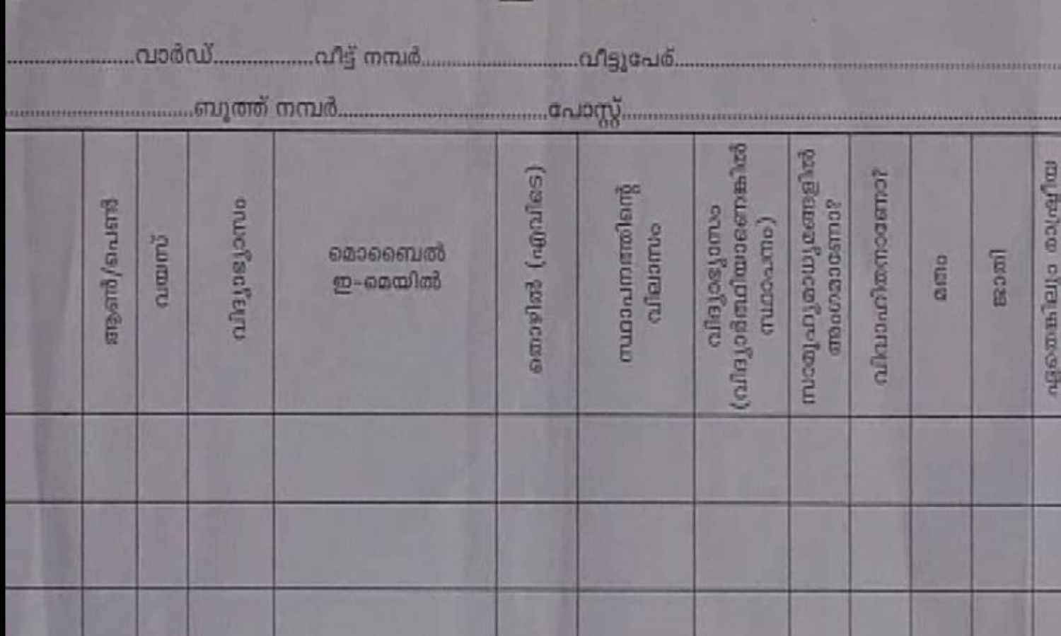 ജാതി, മതം, വിദ്യാഭ്യാസ യോഗ്യത, തൊഴില്, രാഷ്ട്രീയ-സാമുദായിക ആഭിമുഖ്യം,സമൂഹ മാധ്യമങ്ങളിലെ ഇടപെടലുകള്, ക്ഷേമ പെന്ഷനുകള് തുടങ്ങിയവ സംബന്ധിച്ച് ചോദ്യാവലിയില് പരാമര്ശമുണ്ട്.