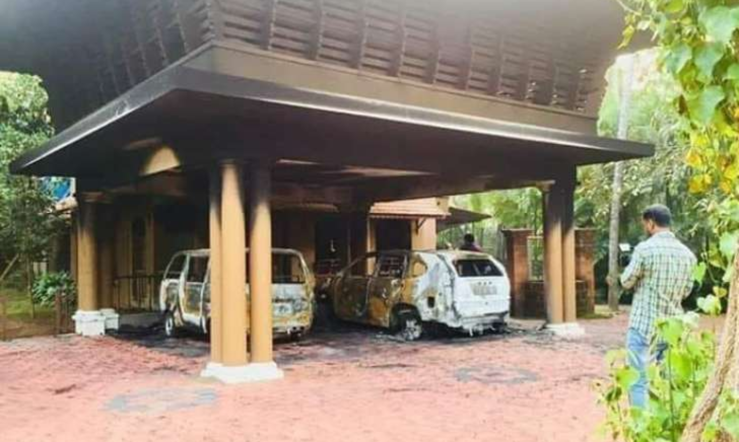 വാഹനങ്ങള് കത്തിച്ചത് പെട്രോളൊഴിച്ച്: സ്വാമി സന്ദീപാനന്ദഗിരിയുടെ സുരക്ഷയ്ക്ക് ഗണ്മാന്