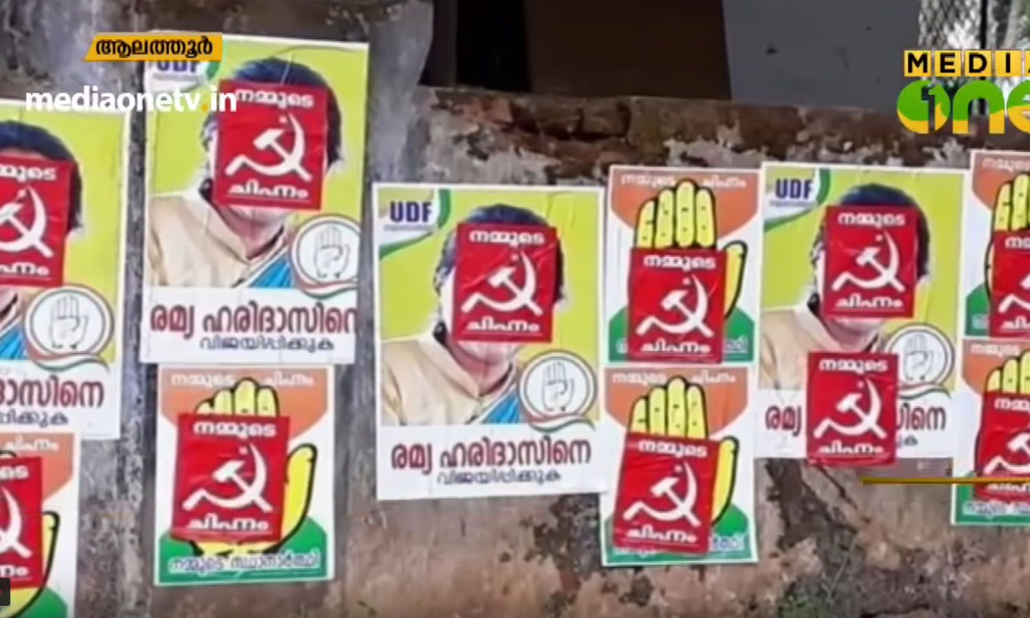 പാട്ടു ചര്ച്ചകള്ക്ക് ശേഷം ആലത്തൂരിലെ ഇപ്പോഴത്തെ പ്രധാന ചര്ച്ച പോസ്റ്റര് വിവാദമാണ്. യു.ഡി.എഫ് സ്ഥാനാര്ഥി രമ്യാ ഹരിദാസിന്റെ പോസ്റ്ററുകള്ക്ക് മേല് വ്യാപകമായി എല്.ഡി.എഫ് ചിഹ്നം പതിച്ചെന്നാണ് ആരോപണം. സോഷ്യല് മീഡിയയില് ഇത് വലിയ ചര്ച്ചയായിക്കഴിഞ്ഞു.
