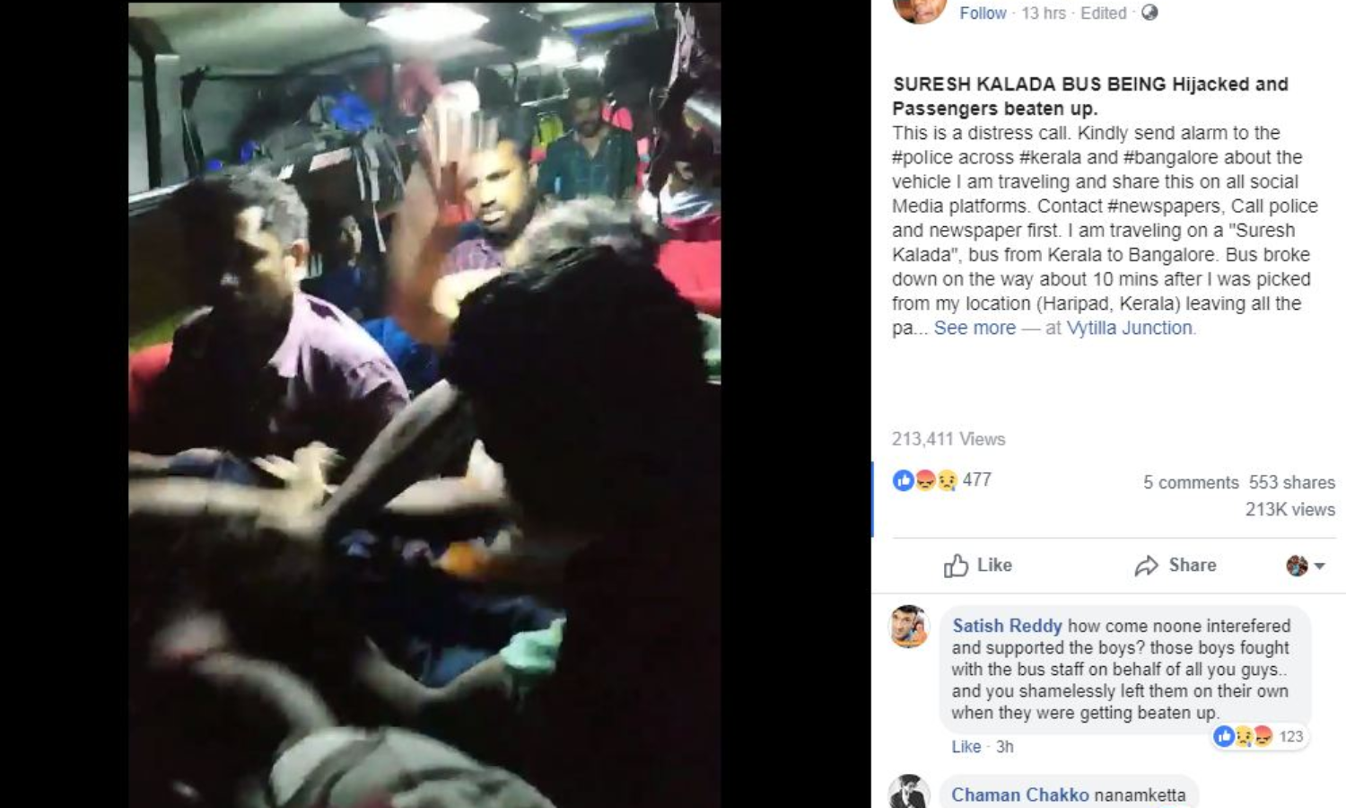 പിന്നീട് മൂന്ന് മണിക്കൂറിന് ശേഷം സുരേഷ് കല്ലടയുടെ ജീവനക്കാര് വഴിയില് ബസ് തടയുകയായിരുന്നു. യുവാക്കളെ ബലമായി ബസില് നിന്നും ഇറക്കി കൊണ്ടുപോകുന്നതും മര്ദിക്കുന്നതും മറ്റൊരു യാത്രക്കാരനായ ജേക്കബ് ഫിലിപ്പാണ് മൊബൈലില് ചിത്രീകരിച്ചത്. ജേക്കബ് ഫിലിപ്പ് ഈ ദൃശ്യങ്ങള് സോഷ്യല്മീഡിയയില് പങ്കുവെച്ചതോടെയാണ് ബസ് ജീവനക്കാരുടെ ഗുണ്ടായിസം പുറത്തായിരിക്കുന്നത്.