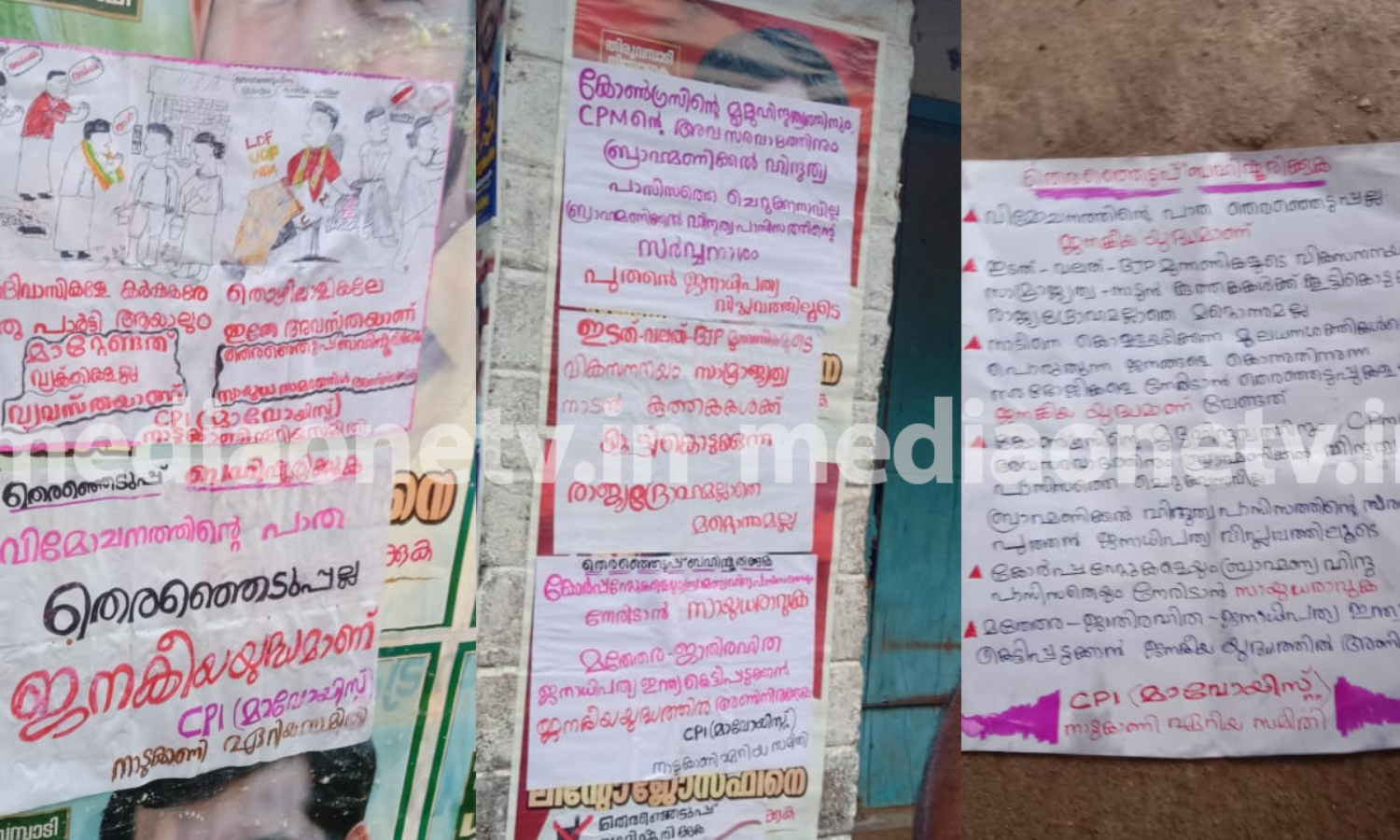 തിരുവമ്പാടി മുത്തപ്പൻ പുഴയിൽ ആണ് പോസ്റ്ററുകൾ പതിച്ചത്