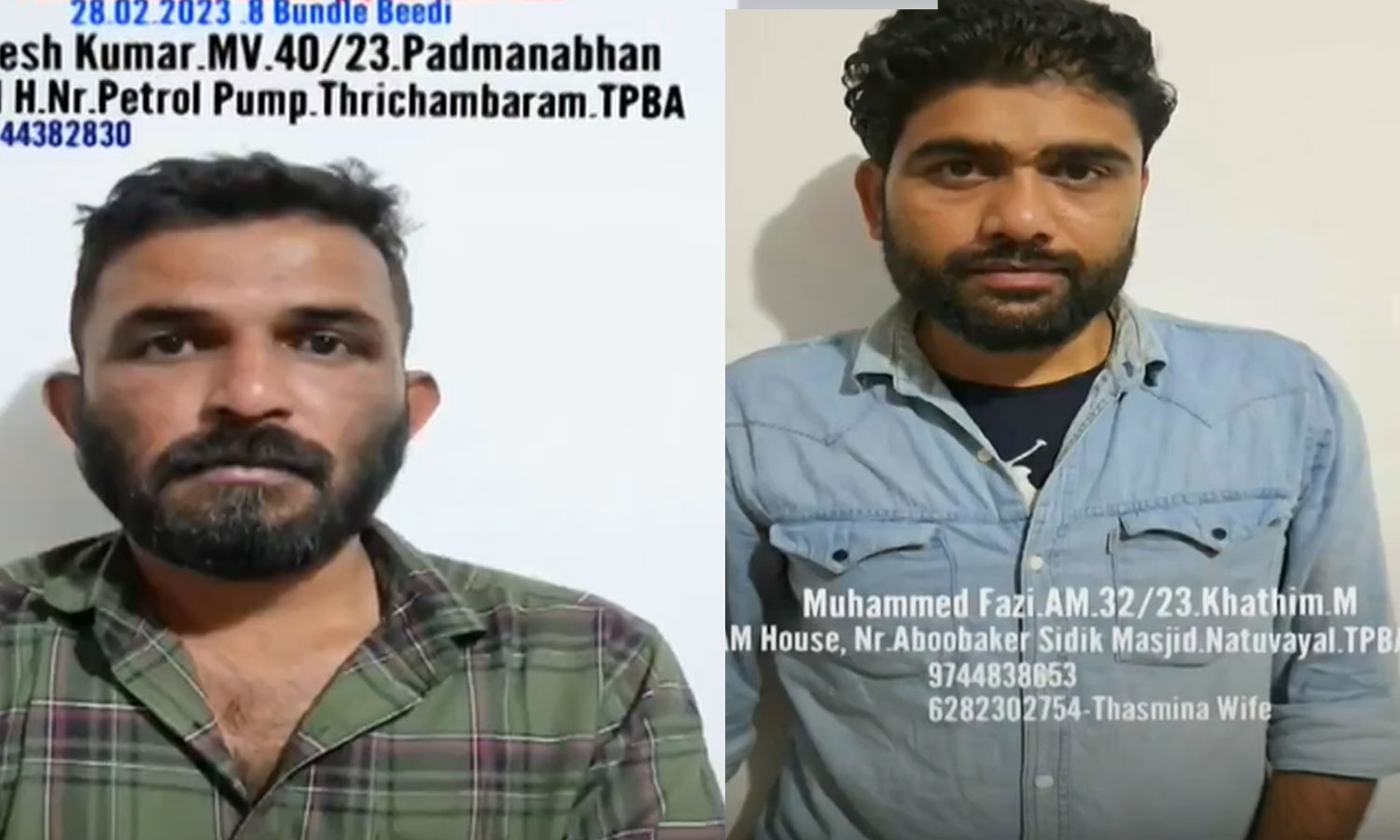 ഇതേ തുടർന്ന് ജയിൽ അധികൃതർ കണ്ണൂർ ടൗൺ പൊലീസിനെ വിവരമറിയിച്ചു. പിന്നീട് ടൗൺ പൊലീസെത്തി രണ്ടുപേരെയും കസ്റ്റഡിയിലെടുക്കുകയായിരുന്നു. ഇവർ ജയിലിനുള്ളിലേക്ക് വലിച്ചെറിഞ്ഞ 120 പാക്കറ്റ് ബീഡിയും പൊലീസ് കണ്ടെടുത്തിട്ടുണ്ട്. നേരത്തെ തന്നെ ഇതിന്റെ ദൃശ്യങ്ങളും പുറത്ത് വന്നിരുന്നു.