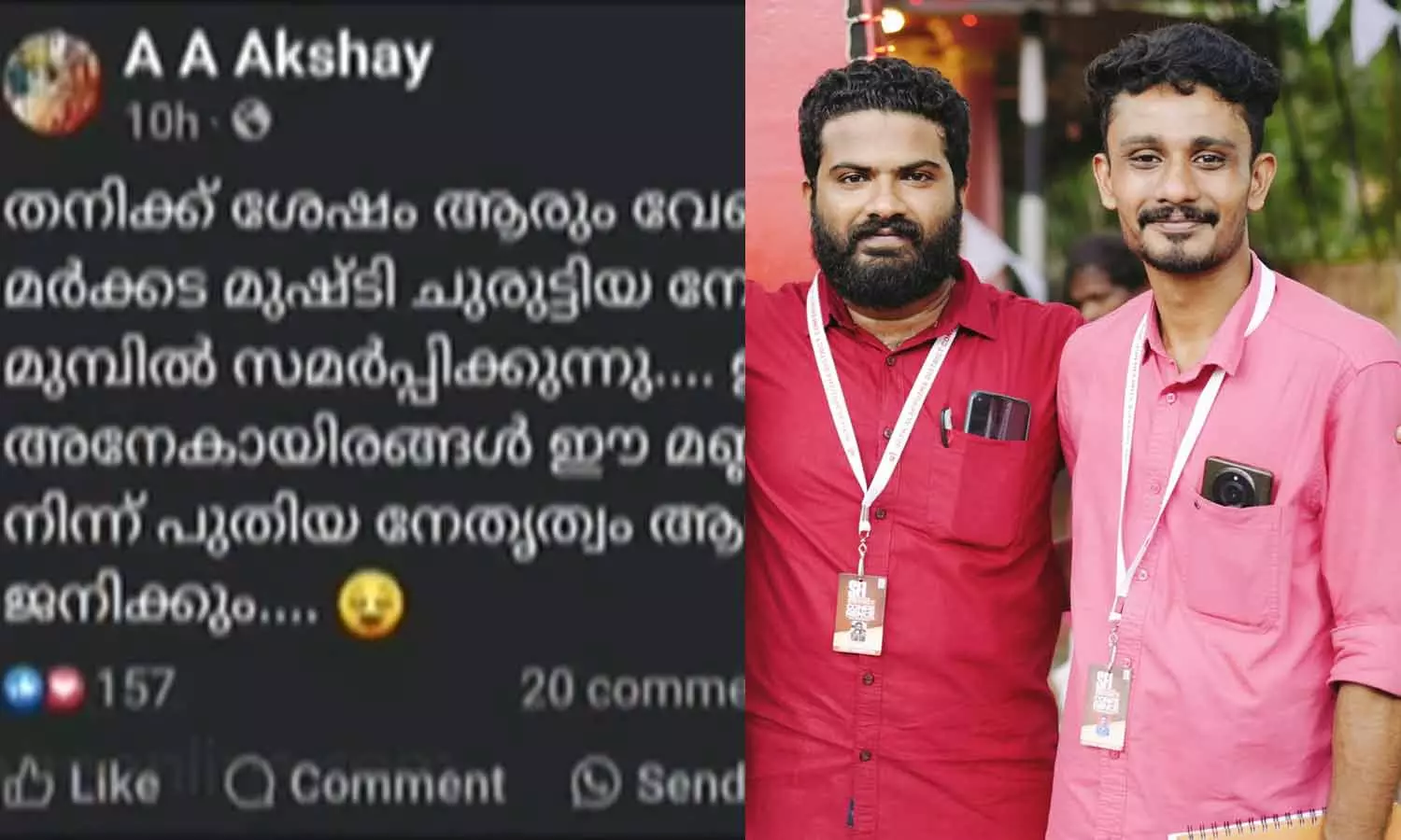 സുധാകരന്റെ കാലത്ത് മറ്റുള്ളവർക്ക് പരിഗണനനൽകിയില്ലെന്നാണു എസ്എഫ്ഐ, ഡിവൈഎഫ്ഐ നേതാക്കളുടെ ആക്ഷേപം. തനിക്ക് ശേഷം ആരും വേണ്ട എന്ന് മർക്കട മുഷ്ടി ചുരുട്ടിയ നേതാവിന് മുന്നിൽ ശിവപ്രസാദിന്റെ സ്ഥാനം സമർപ്പിക്കുന്നു എന്നാണ് എസ്എഫ്ഐ കേന്ദ്ര കമ്മിറ്റി അംഗം അക്ഷയ്ടെ പോസ്റ്റ്. സമാന രീതിയിലെ പരിഹാസം ചൊരിഞ്ഞാണ് ഡിവൈഎഫ്ഐ ജില്ല സെക്രട്ടറി ജെയിംസ് സാമൂവൽ അടക്കമുള്ളവർ പോസ്റ്റിട്ടിരിക്കുന്നത്.