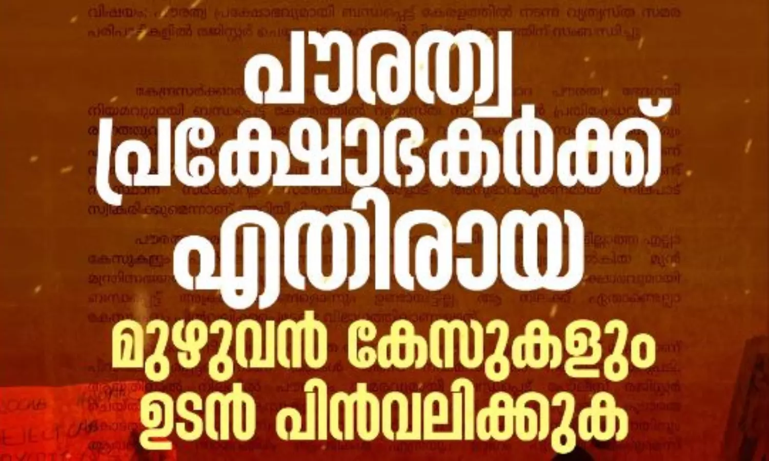പൗരത്വ പ്രക്ഷോഭത്തോട് അനുഭാവപൂർണമായ നിലപാട് സ്വീകരിക്കുന്നുവെന്ന് മുഖ്യമന്ത്രി പറഞ്ഞെങ്കിലും അതുമായി ബന്ധപ്പെട്ട് നടന്ന സമരങ്ങളെ സംഘ്പരിവാർ താല്പര്യം മുൻനിർത്തി പോലീസ് കൈകാര്യം ചെയ്യുകയും കേസ് രജിസ്റ്റർ ചെയ്യുകയുമാണുണ്ടായത്