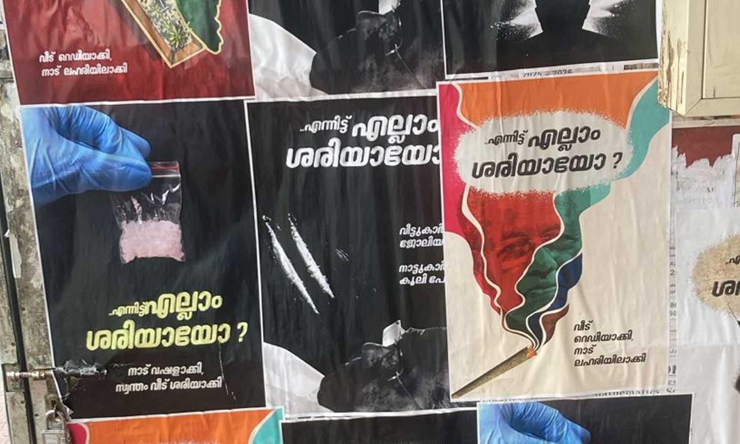 തിരുവനന്തപുരം: ലഹരി വിരുദ്ധ ദിനത്തിൽ സർക്കാരിനെ വിമർശിച്ചുകൊണ്ട് തിരുവനന്തപുരം നഗരത്തിൽ അജ്ഞാത പോസ്റ്ററുകൾ. "എന്നിട്ട് എല്ലാം ശരിയായോ? " എന്ന ചോദ്യമുയർത്തിക്കൊണ്ടുള്ള പോസ്റ്ററുകളാണ് നഗരത്തിന്റെ പലയിടത്തും ഉള്ളത്. ‘വീട് നന്നാക്കി’, ‘നാട് ലഹരിയിൽ മുക്കി’, ‘സംസ്ഥാനം തകർത്തു" "സ്വന്തം വീട് ഭംഗിയാക്കി" തുടങ്ങിയ സന്ദേശങ്ങളാണ് പോസ്റ്ററുകളിലുള്ളത്.