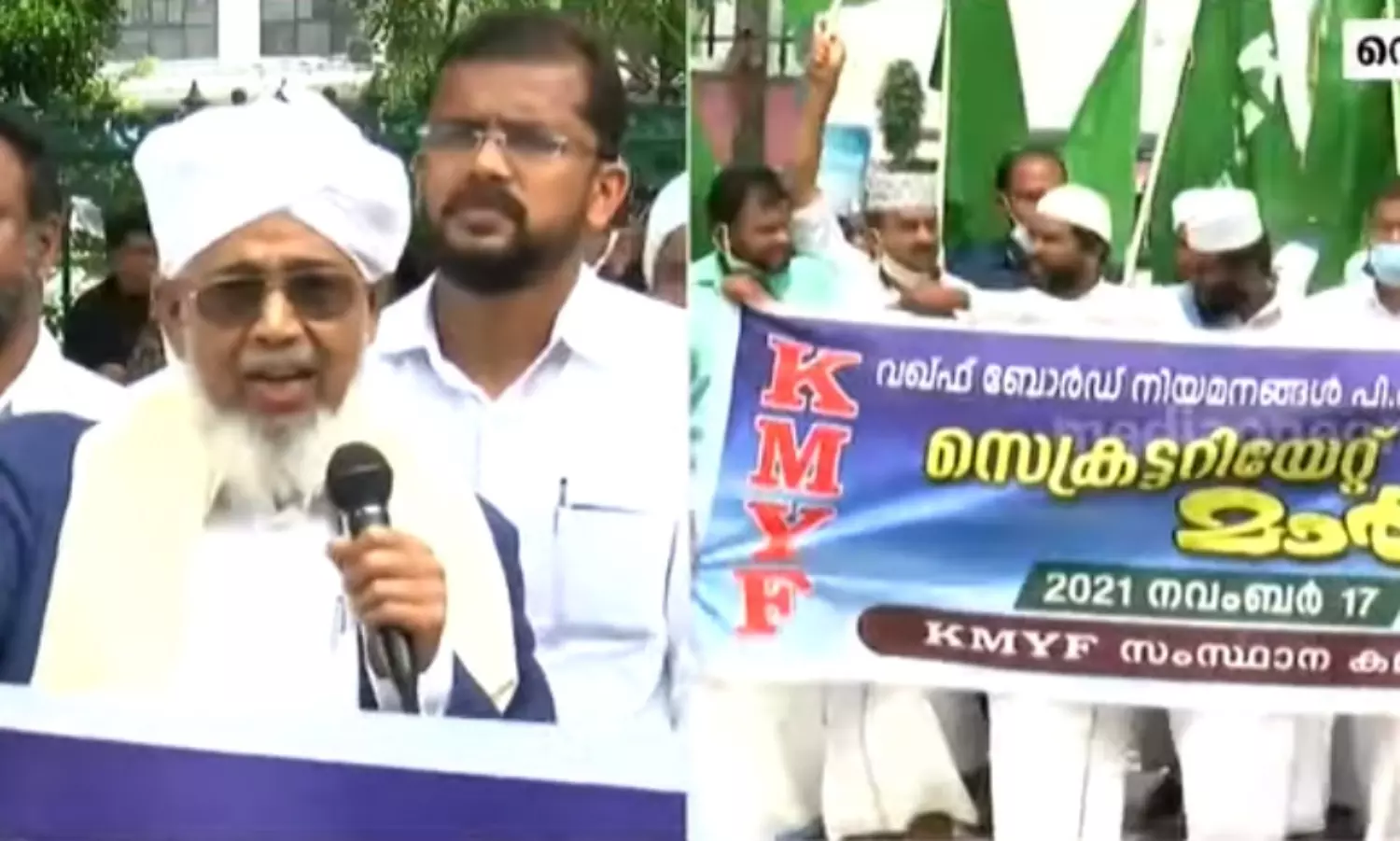 വഖഫ് ബോർഡ് നിയമനങ്ങൾ പി.എസ് സിക്ക് വിട്ടതിൽ പ്രതിഷേധിച്ച് കെ.എം.വൈ.എഫ് സെക്രട്ടറിയേറ്റിലേക്ക് നടത്തിയ മാർച്ചിൽ സംസാരിക്കുകയായിരുന്നു അദ്ദേഹം