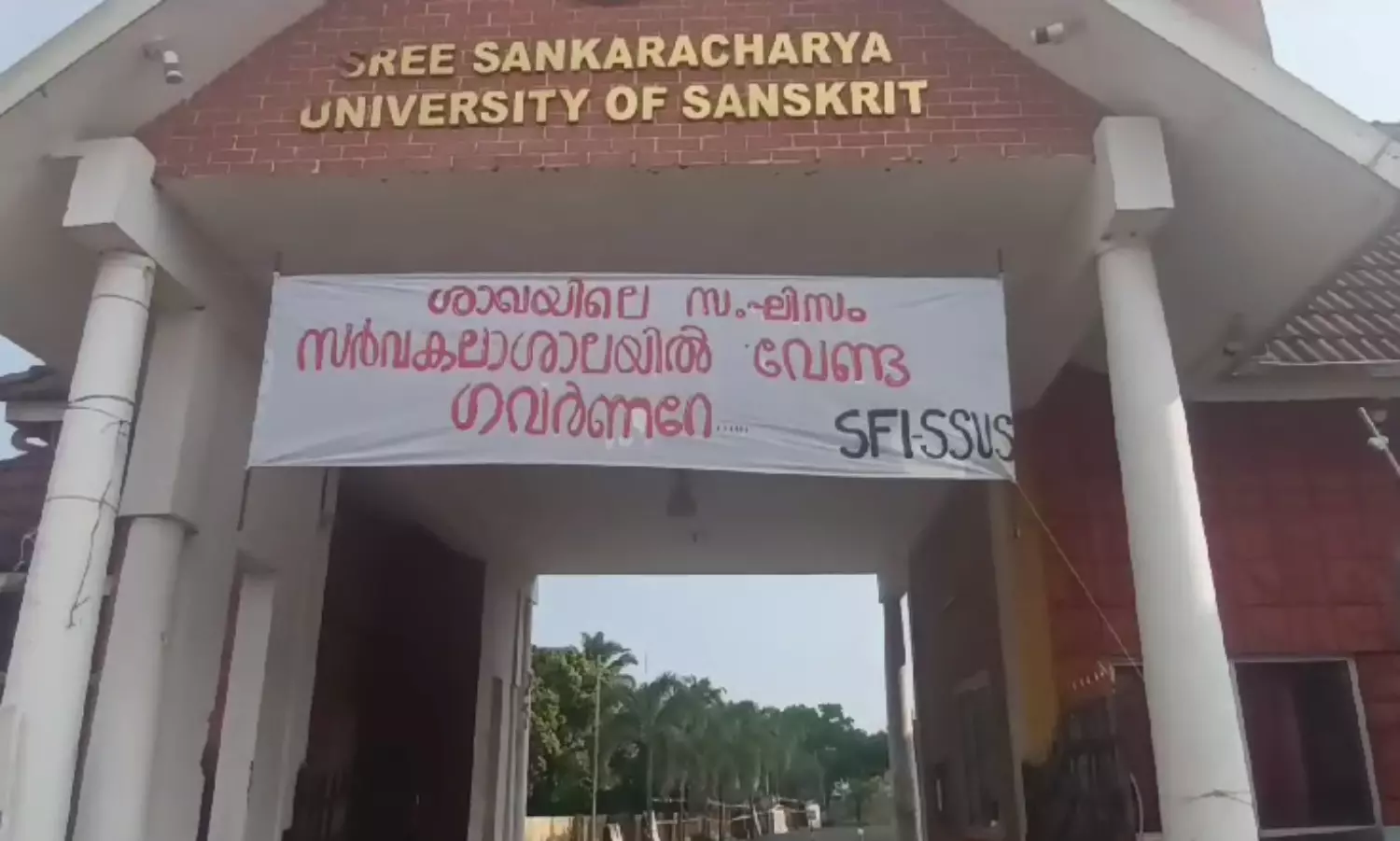 'ശാഖയിലെ സംഘിസം സർവകലാശാലയിൽ വേണ്ട ഗവർണറേ'; ആരിഫ് മുഹമ്മദ് ഖാനെതിരെ കാലടി സര്വകലാശാലയില് ബാനര്