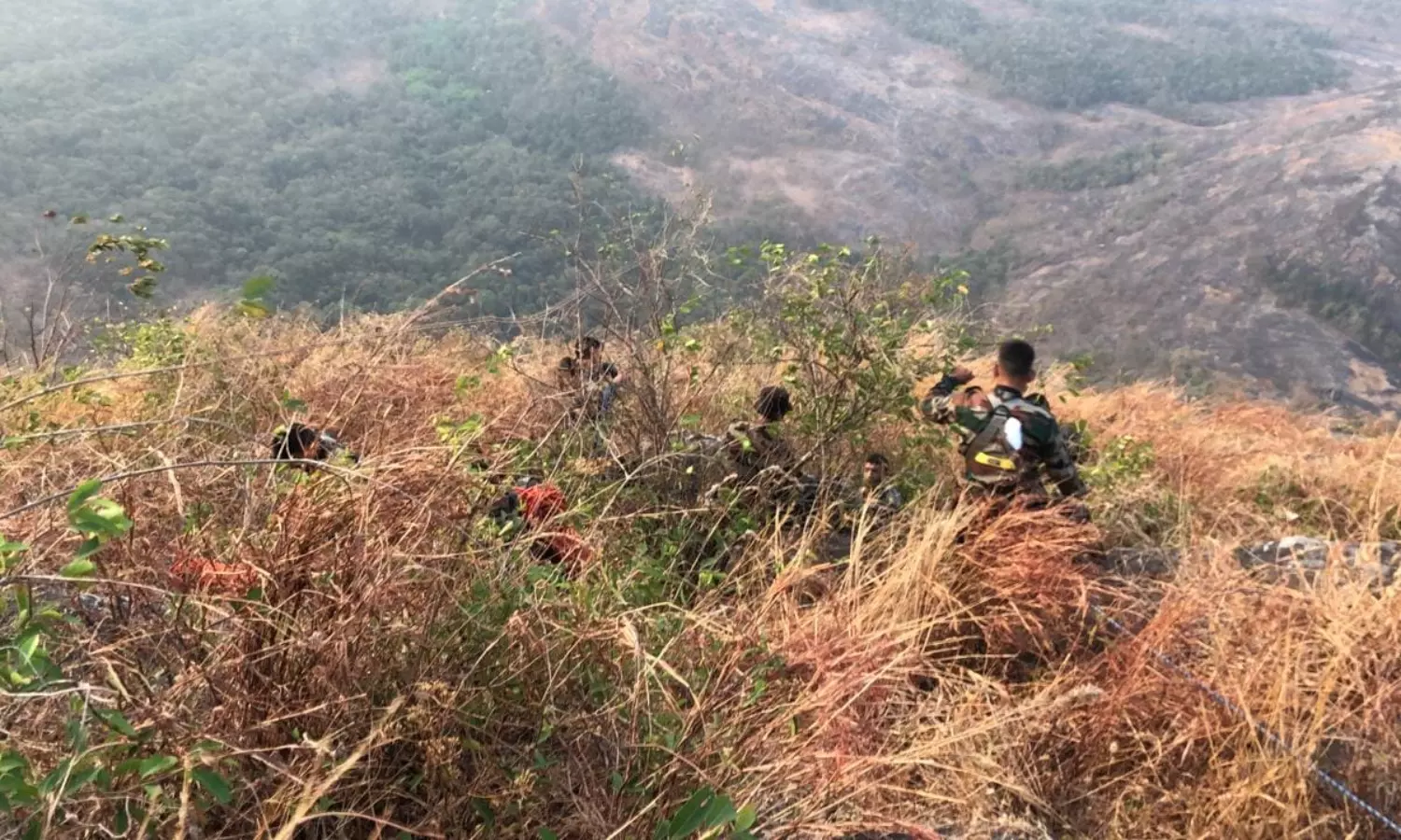 സൂലൂരില്നിന്നും ബെംഗളൂരുവില്നിന്നുമുള്ള കരസേനാംഗങ്ങള് രാത്രിതന്നെ സ്ഥലത്തെത്തിയിരുന്നു. മുഖ്യമന്ത്രി പിണറായി വിജയന് ആവശ്യപ്പെട്ടതനുസരിച്ചാണ് സേനയെത്തിയത്. ലഫ്. കേണല് ഹേമന്ദ് രാജിന്റെ നേതൃത്വത്തില് ഒമ്പതുപേരടങ്ങിയ സംഘമാണ് സൂലൂരില്നിന്നെത്തിയത്. തുടര്ന്ന്, കളക്ടര് മൃണ്മയി ജോഷിയുമായും ജില്ലാ പോലീസ് മേധാവി ആര്. വിശ്വനാഥുമായും ചര്ച്ച നടത്തിയശേഷം നാട്ടുകാരില് ചിലരെ ഒപ്പം കൂട്ടി കരസേനാംഗങ്ങള് മല കയറുകയായിരുന്നു.